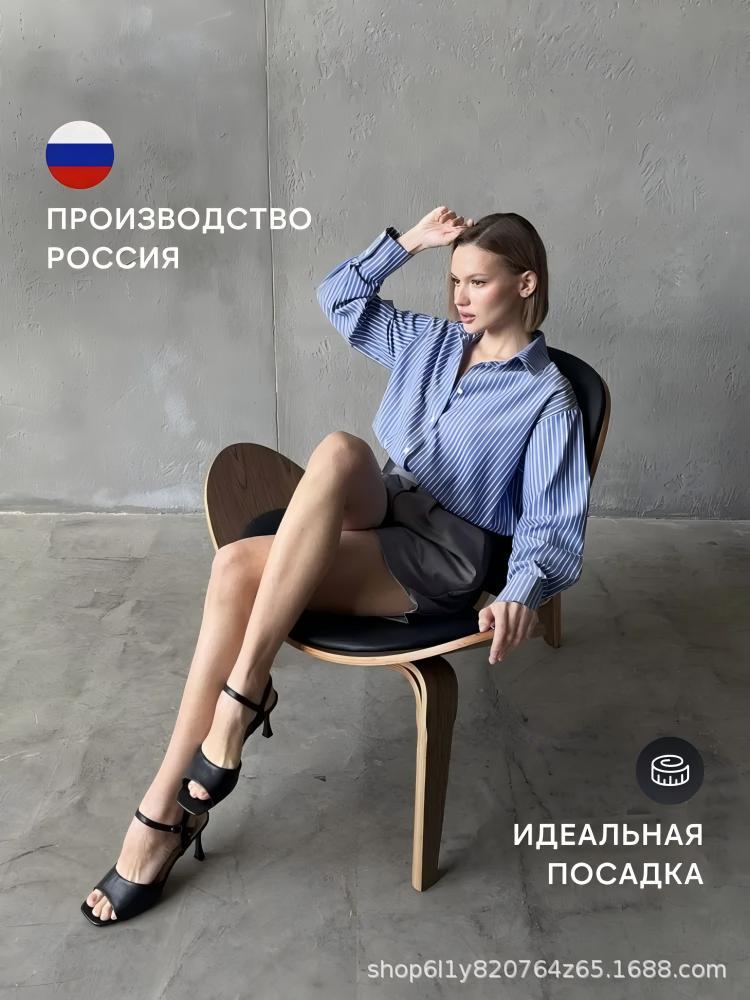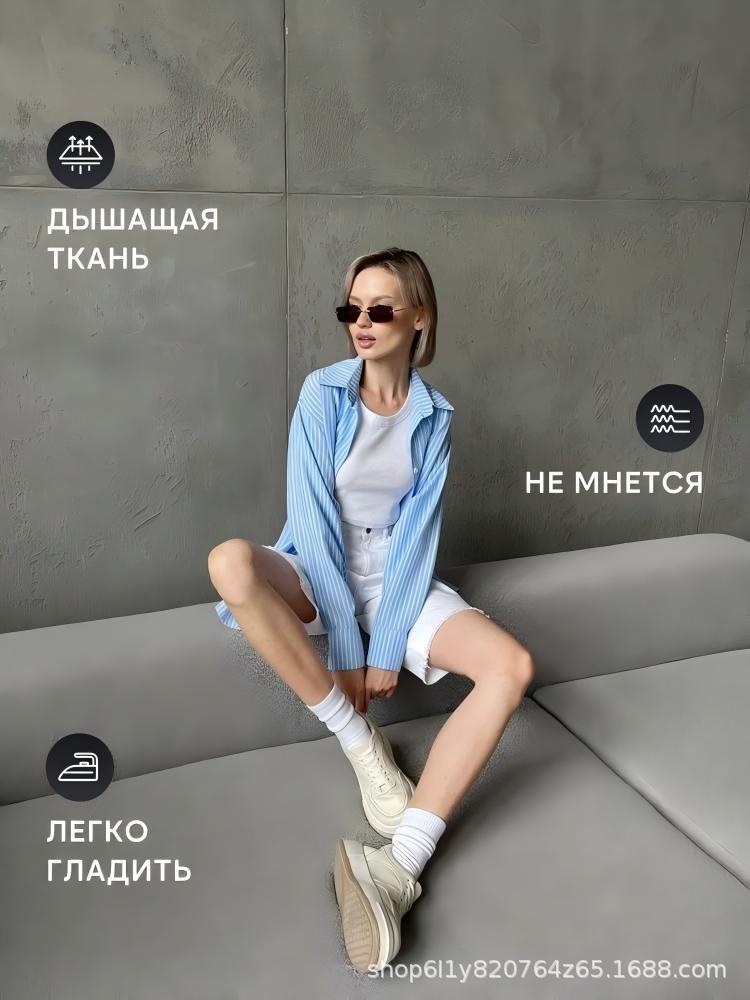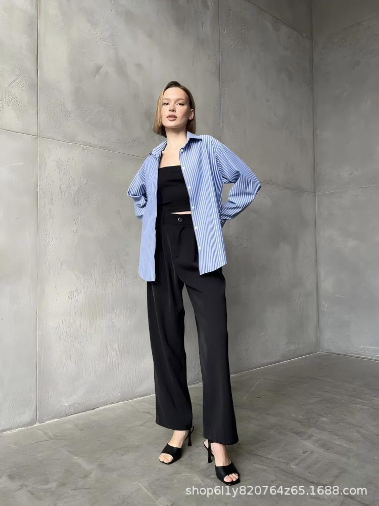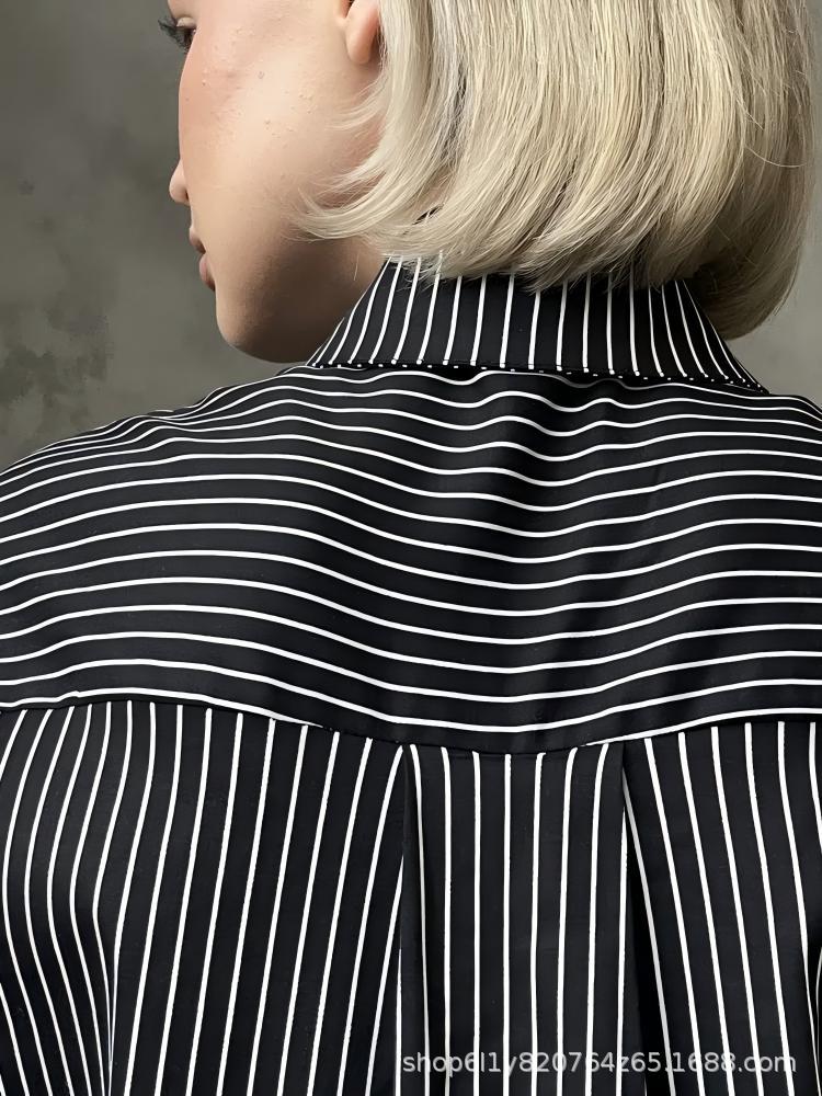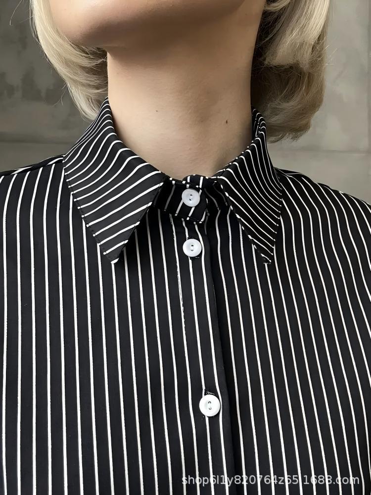 유럽과 미국의 대외 무역 여성의 2024 새로운 느슨한 플러스 사이즈 줄무늬 여성 셔츠 셔츠 캐주얼 긴 소매 셔츠스토어 가기