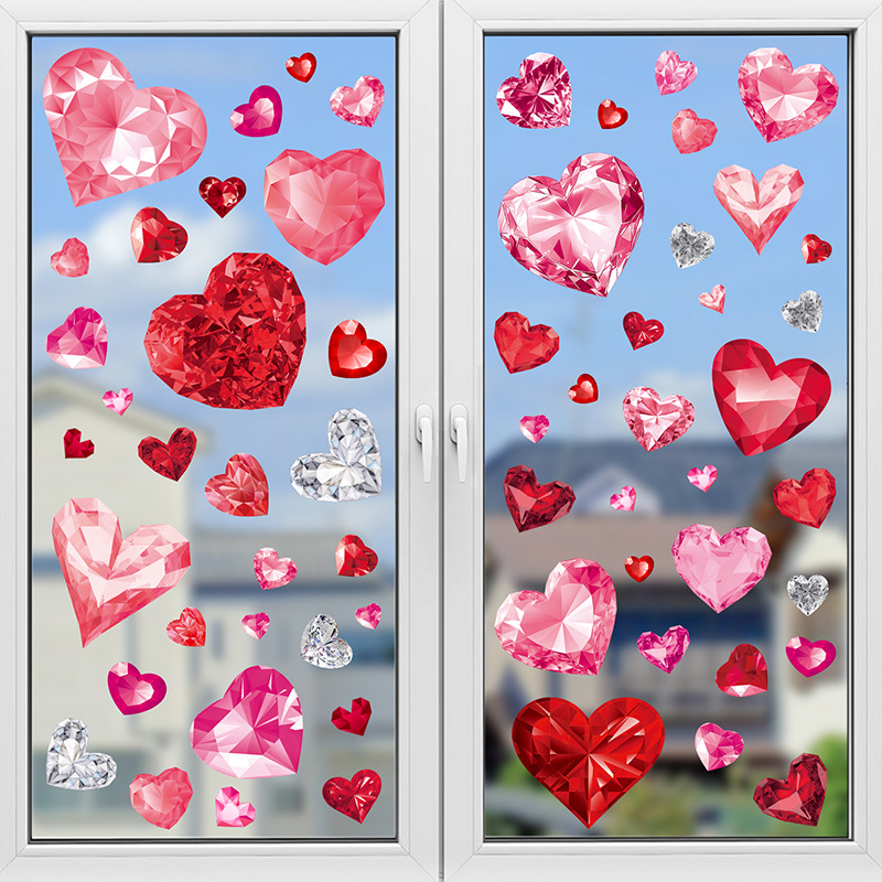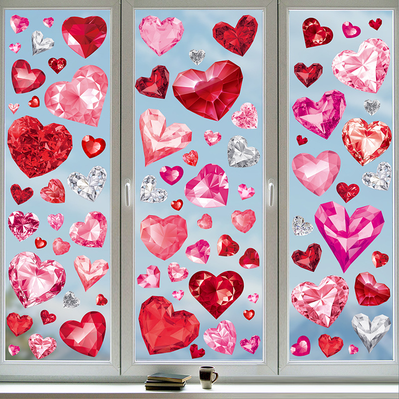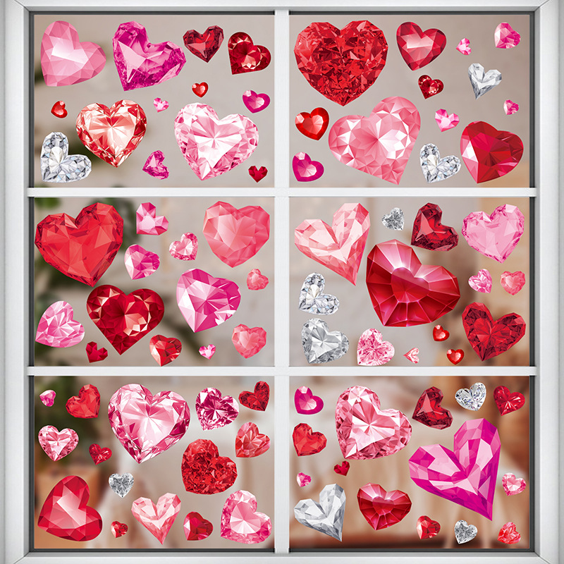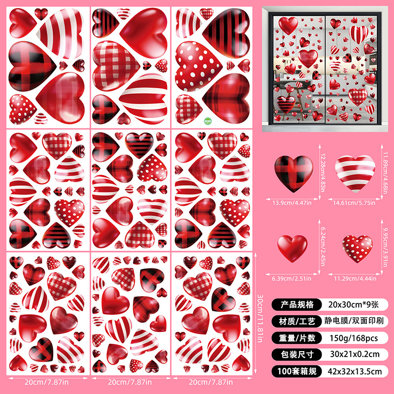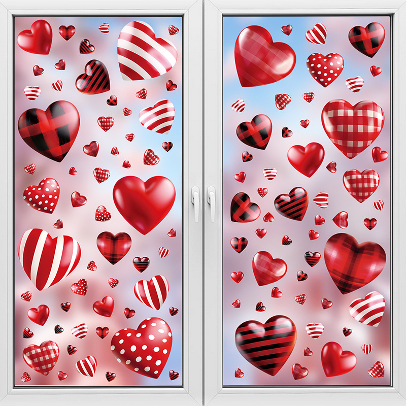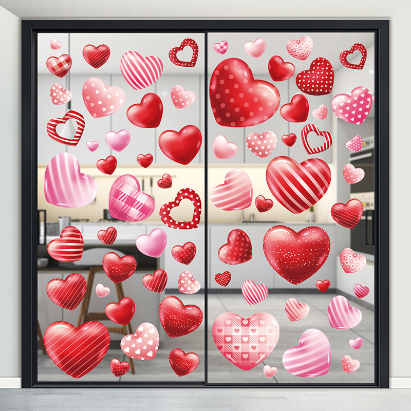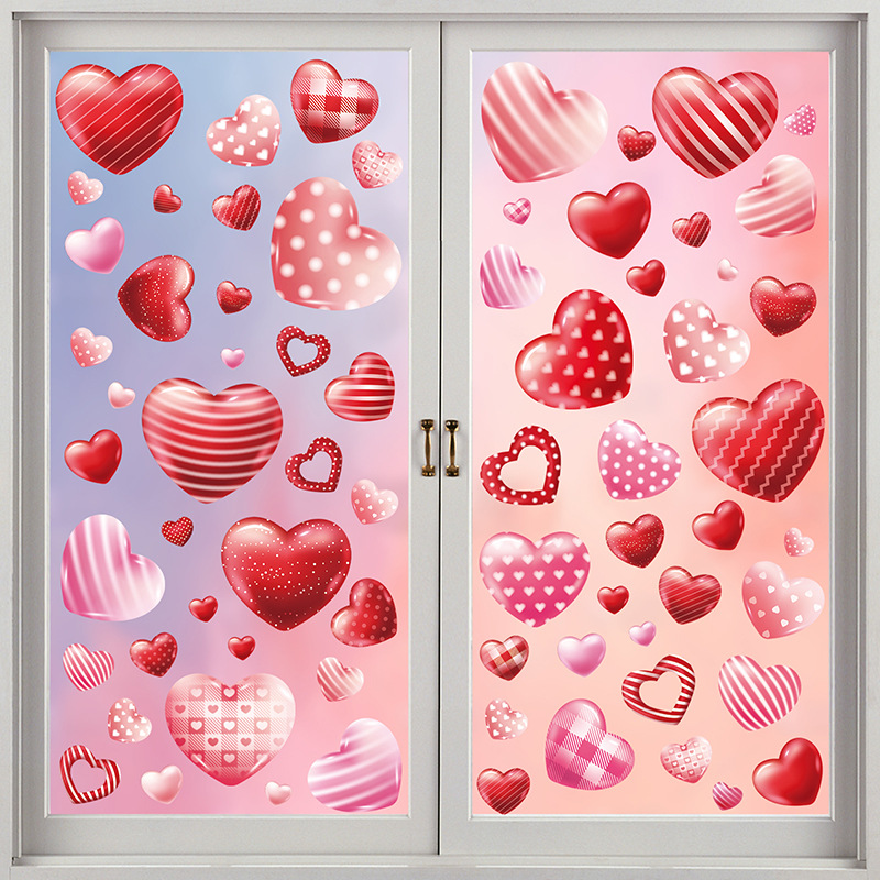 Tiktok 폭발 발렌타인 데이 스트라이프 러브 페스티벌 분위기 몰 스토어 레이아웃 정전기 창 스티커 벽 스티커