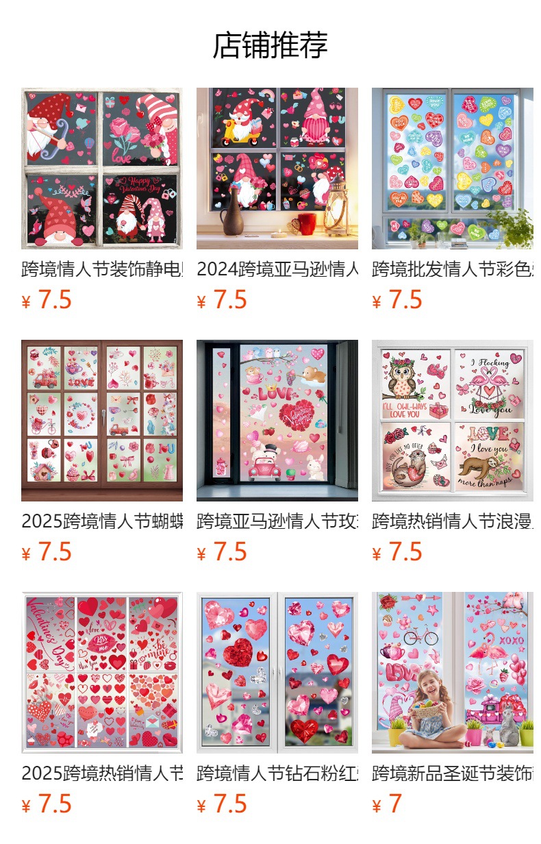 Tiktok 폭발 발렌타인 데이 스트라이프 러브 페스티벌 분위기 몰 스토어 레이아웃 정전기 창 스티커 벽 스티커스토어 가기