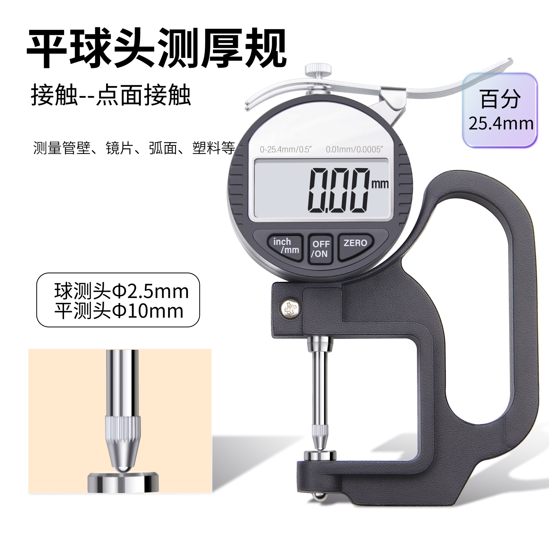 • 디지털 디스플레이 플랫 헤드 100% 0-25.4mm