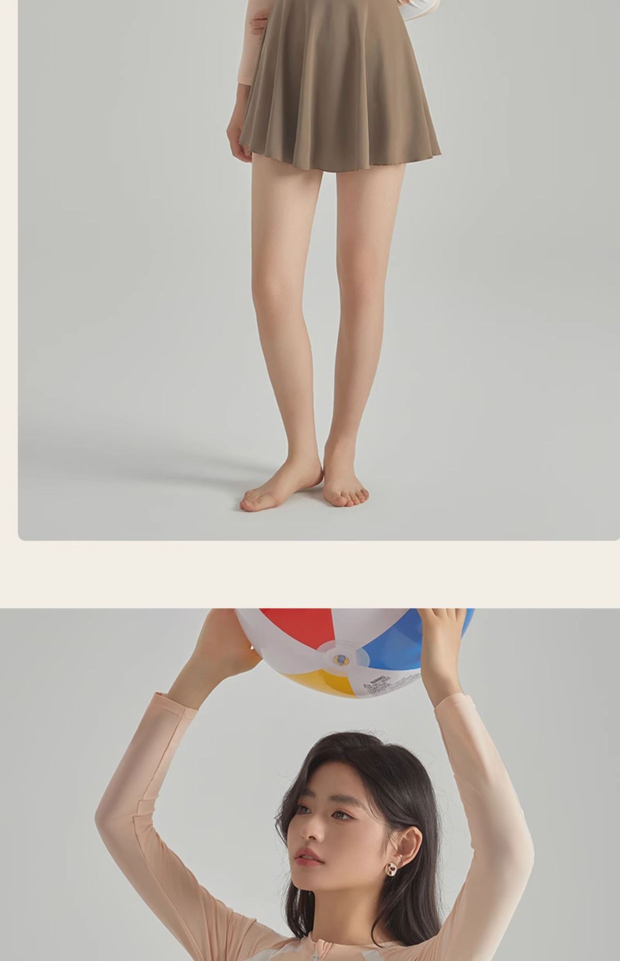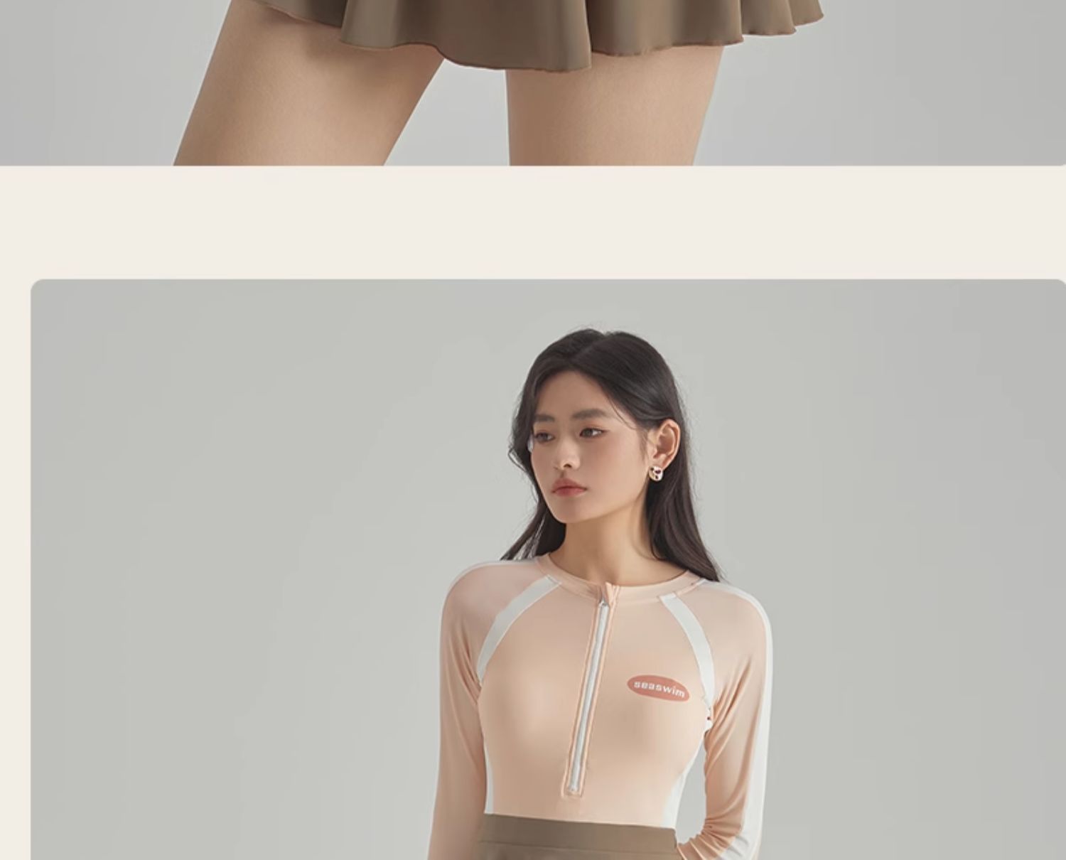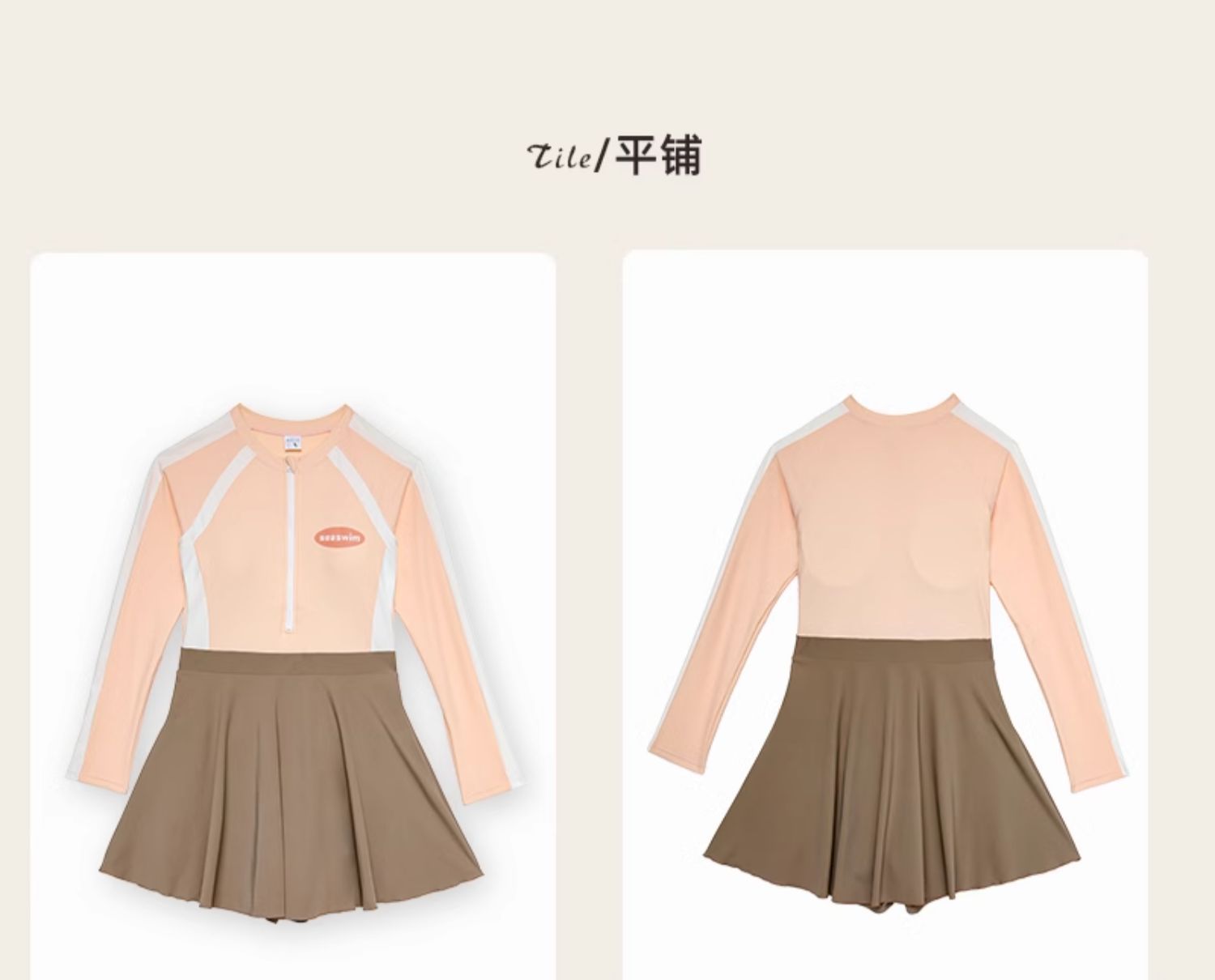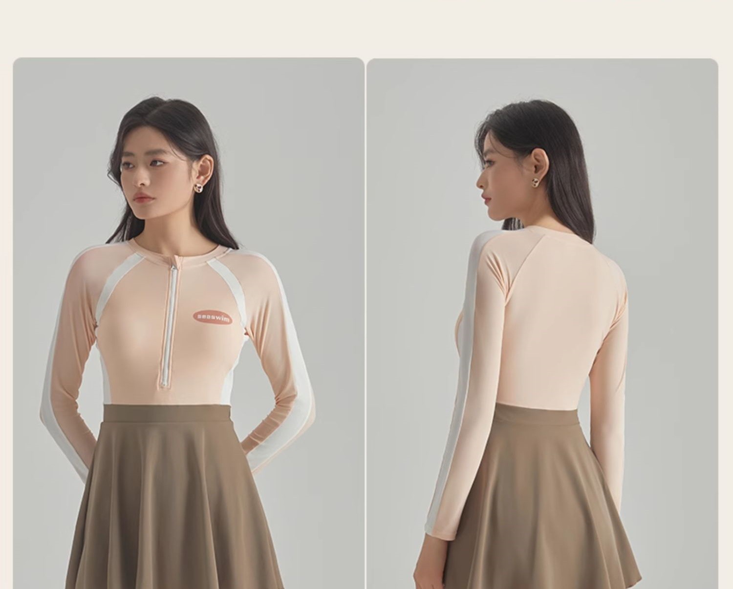 2025 새로운 가벼운 핑크 긴팔 원피스 스타일 캐주얼 보수적 인 소녀의 고기로 덮인 슬리밍 온천 휴일 수영복 여성스토어 가기