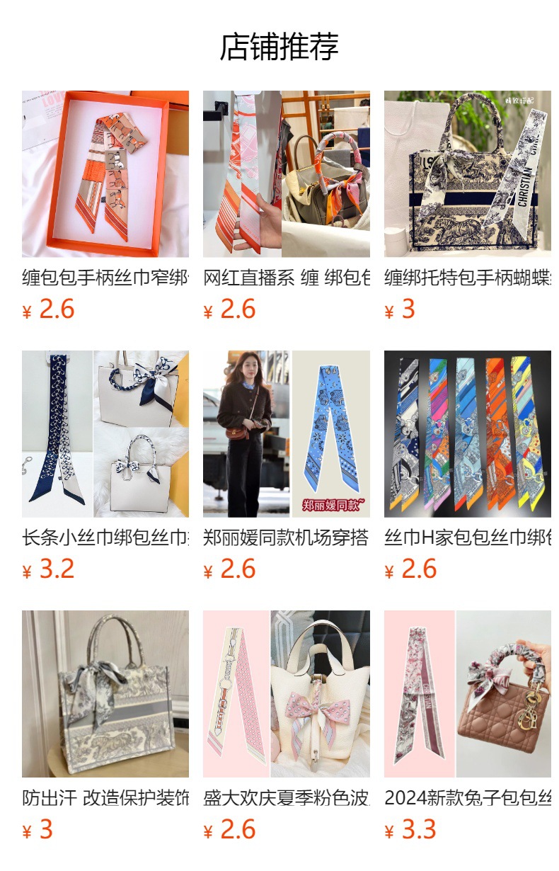 H 가족 새로운 2024 모방 실크 포장 백 스트랩 백 핸들 실크 스카프 바인딩 백 리본 장식 작은 리본스토어 가기