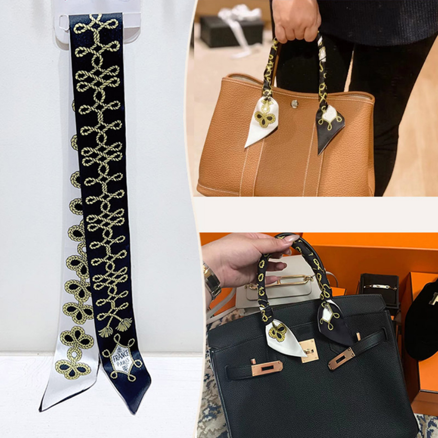 H 가족 새로운 2024 모방 실크 포장 백 스트랩 백 핸들 실크 스카프 바인딩 백 리본 장식 작은 리본