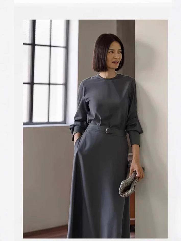 Ama * "우아하고 영원한" 100% Worsted 양모 패치 워크 양가죽 긴 소매 탑/로마 우산 스커트