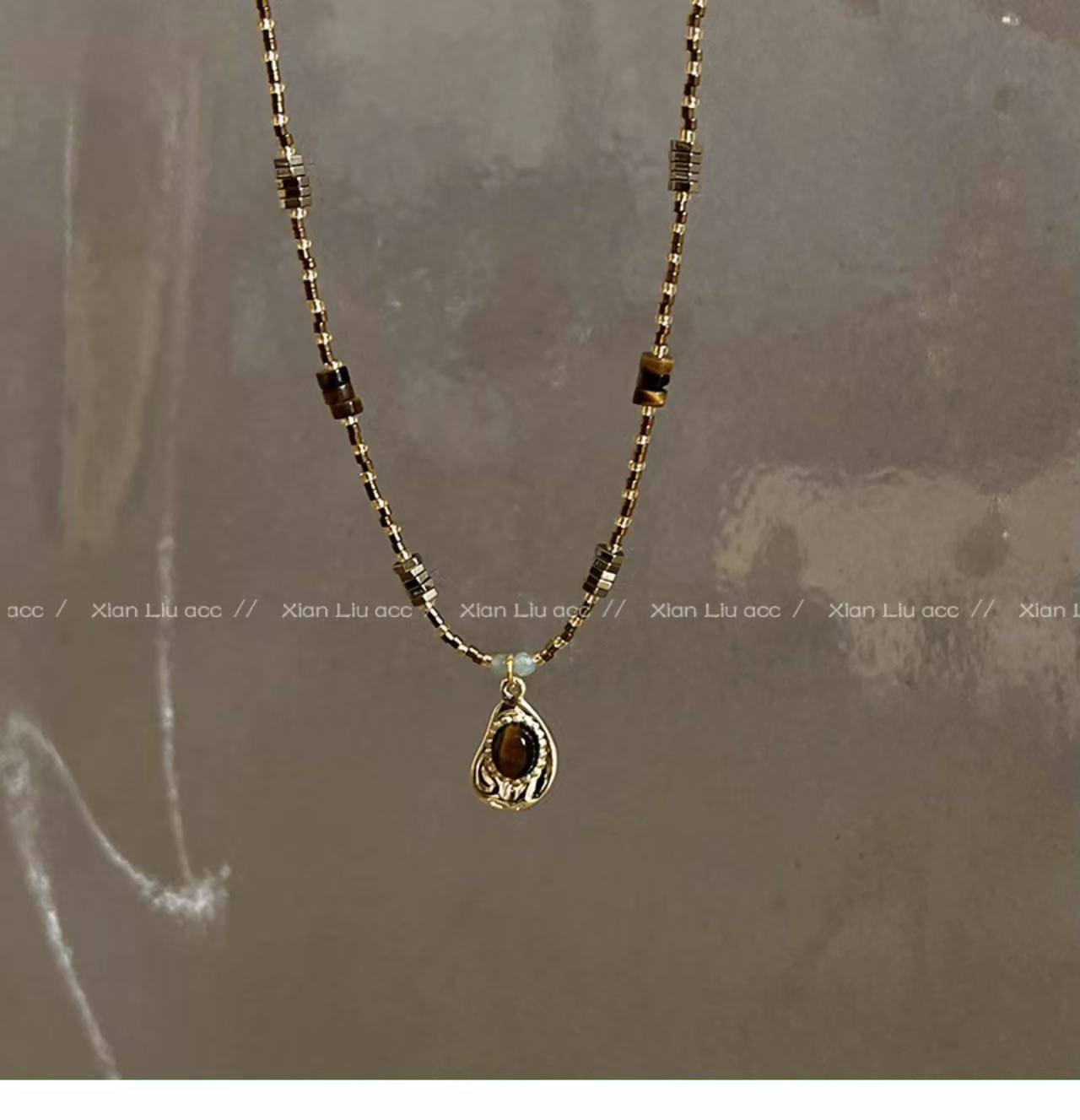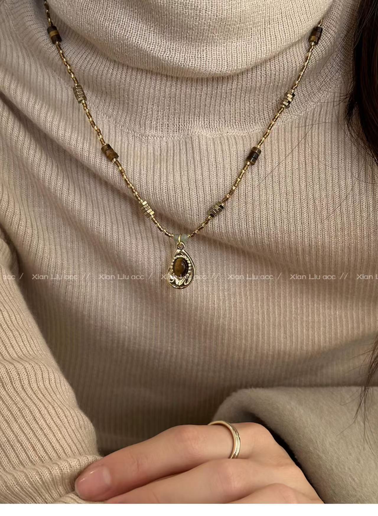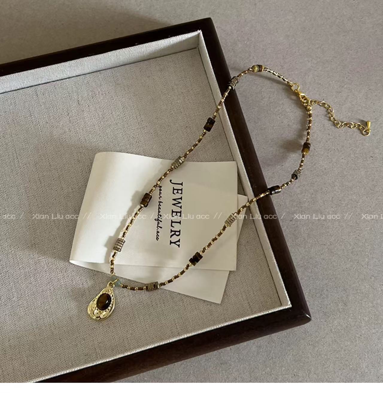 호랑이의 눈 돌 펜던트 목걸이 여성의 2024 새로운 빈티지 쇄골 체인 가벼운 고급 틈새 하이 엔드 스웨터 체인 액세서리스토어 가기