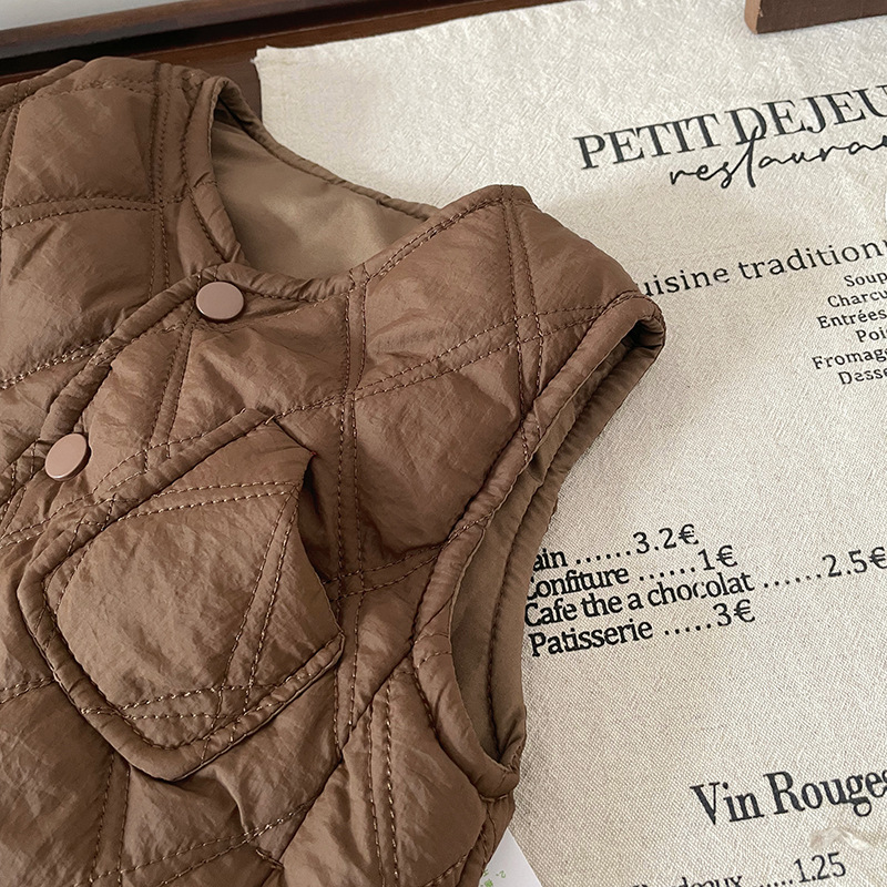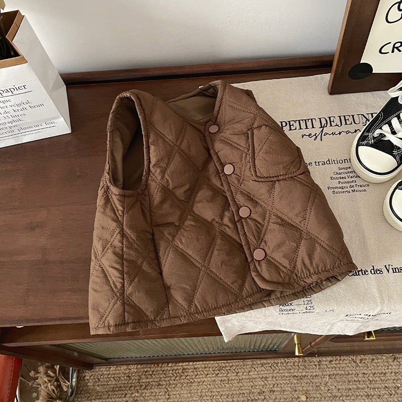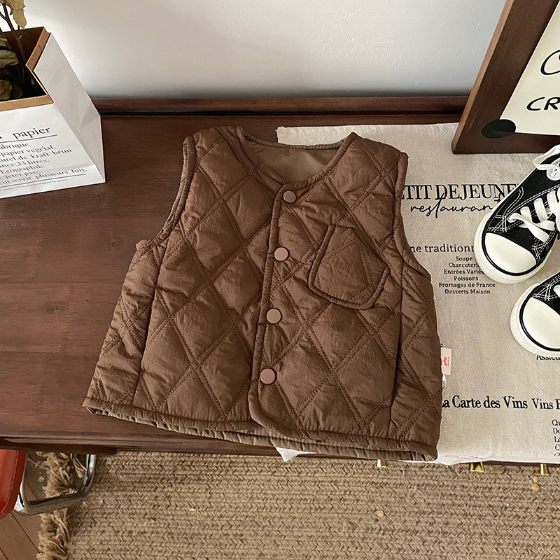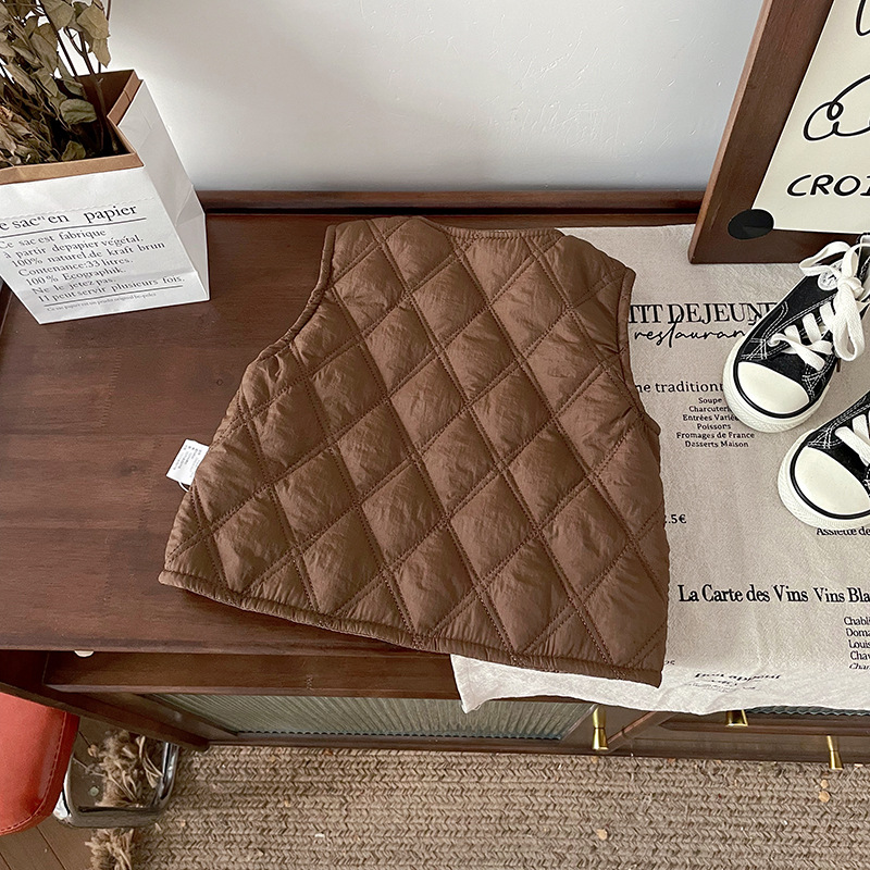 [재고] DW245887 어린이 면화 조끼 2024 가을과 겨울 새로운 다이아몬드 격자 착용 면화 조끼