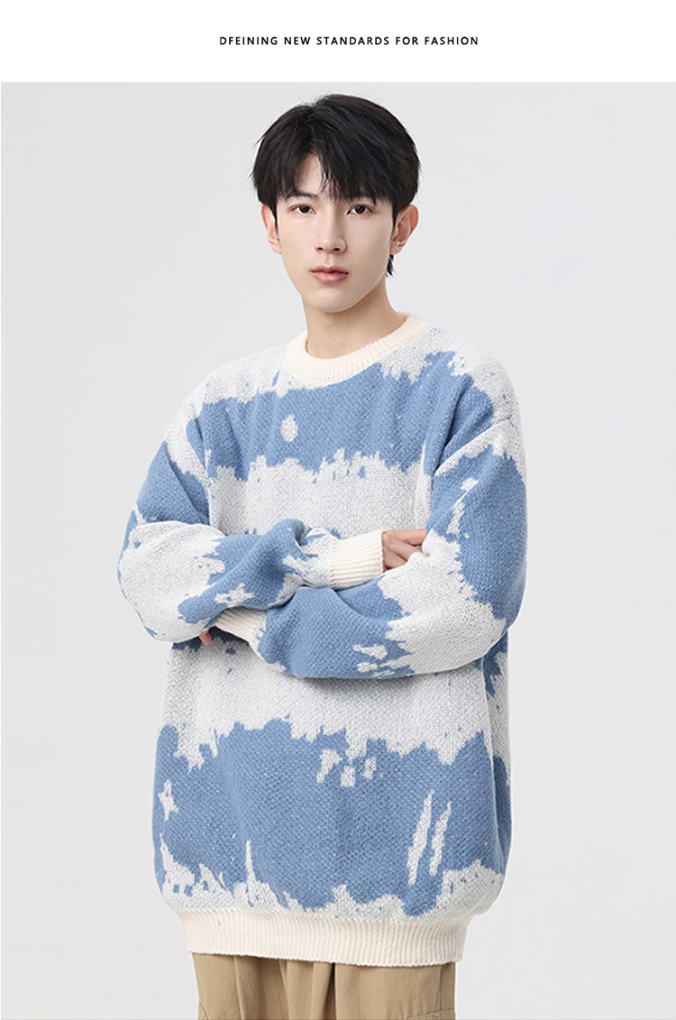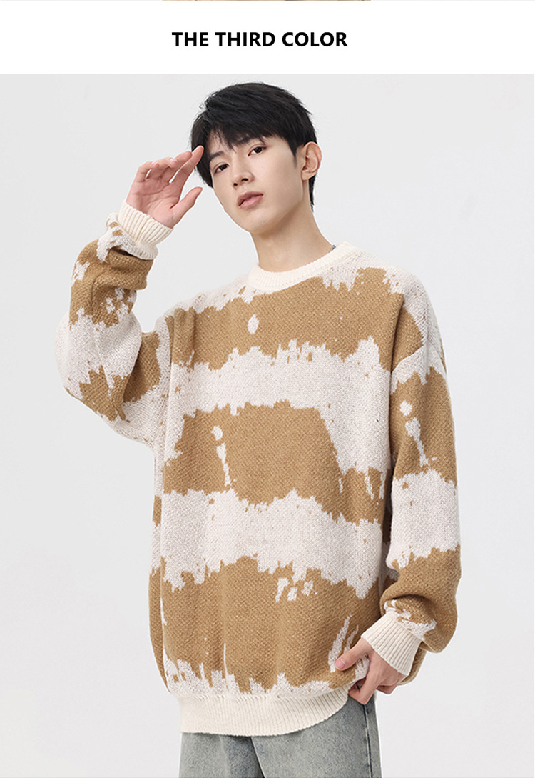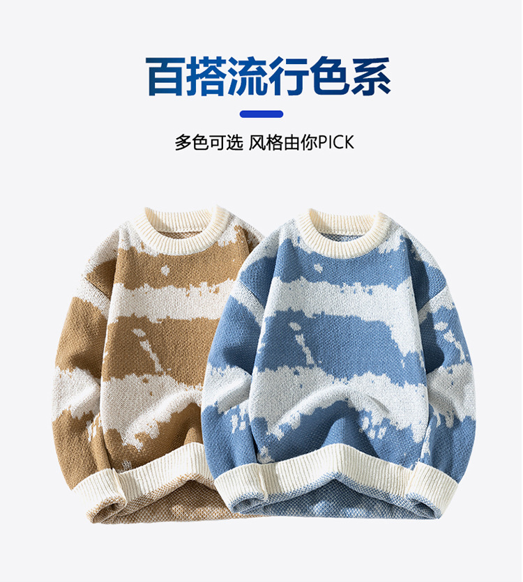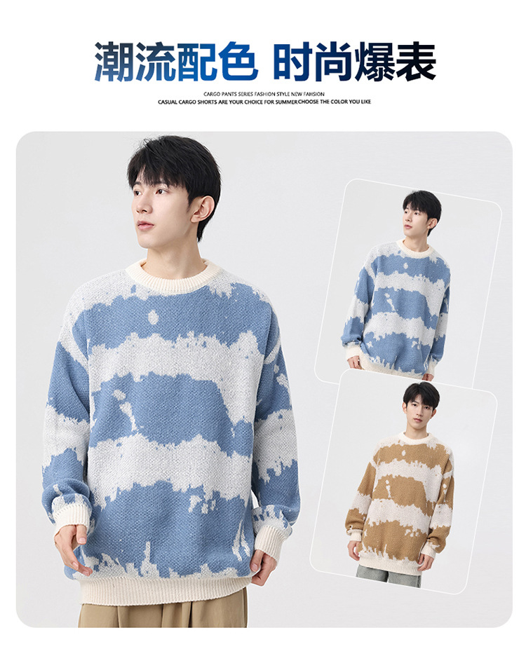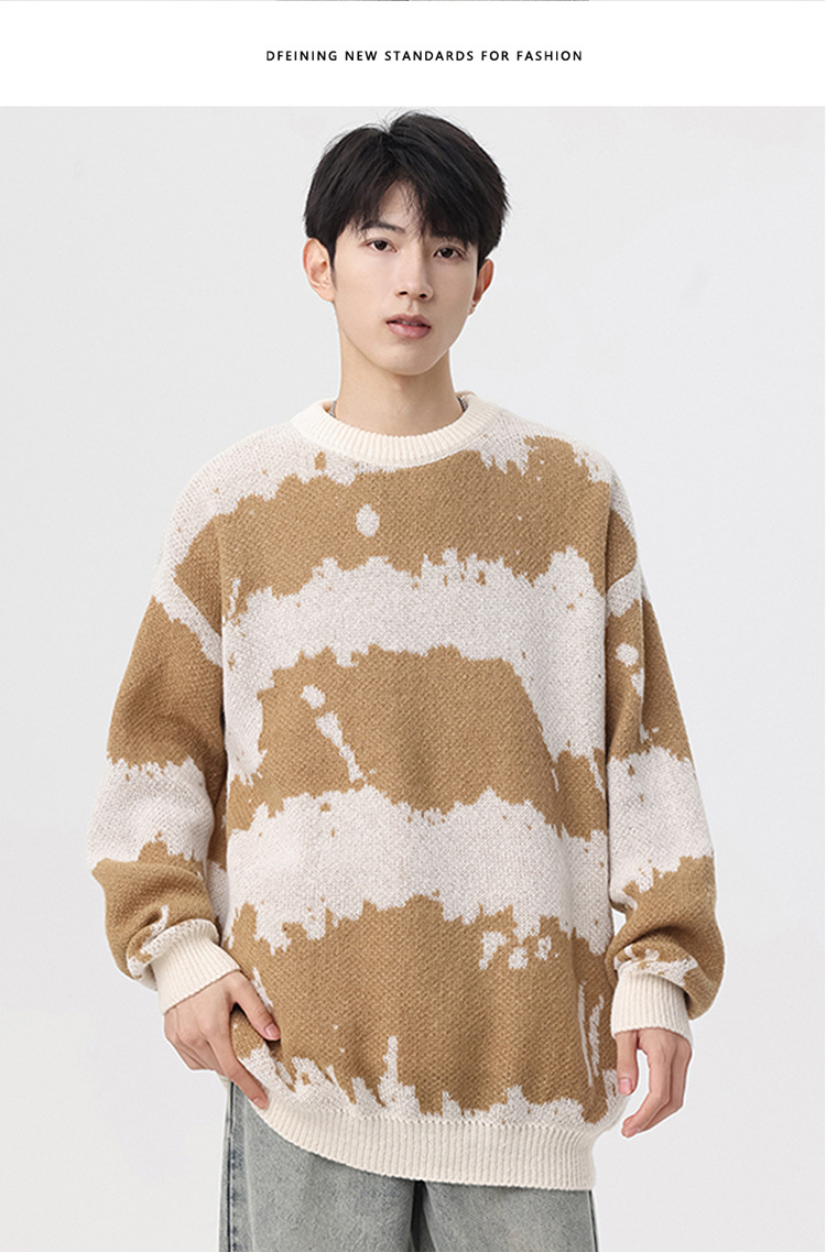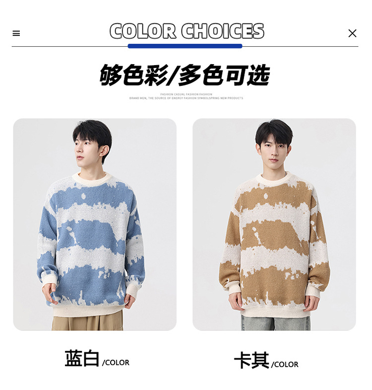 스웨터 남자 넥타이-다이 라운드 넥 봄과 가을 새로운 의상 베이스 셔츠 루즈 탑 콘트라스트 컬러 일본 레트로 니트 스웨터