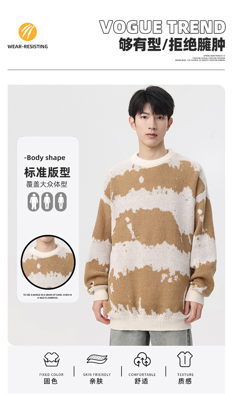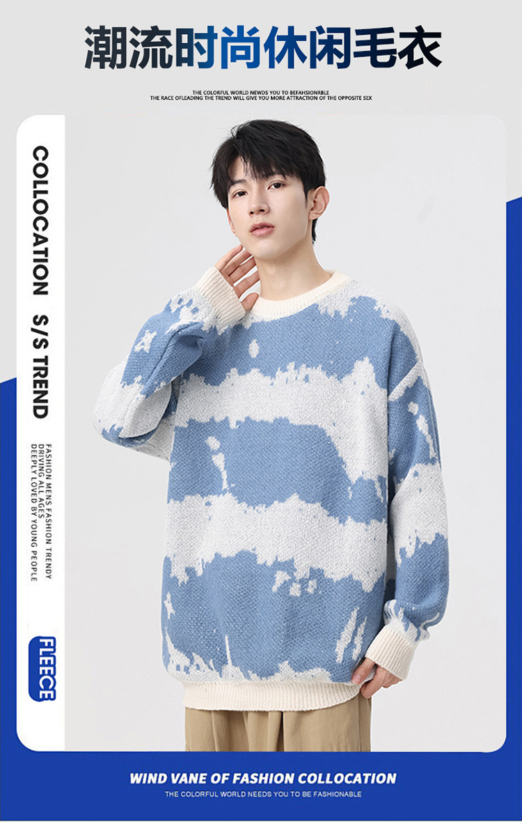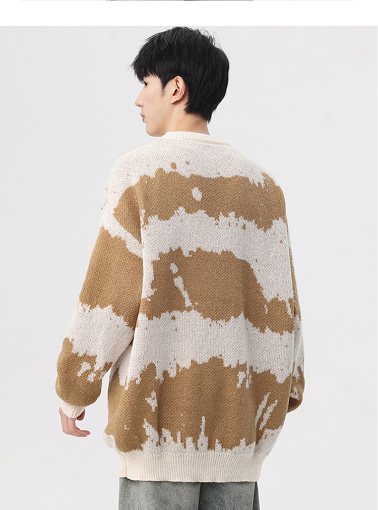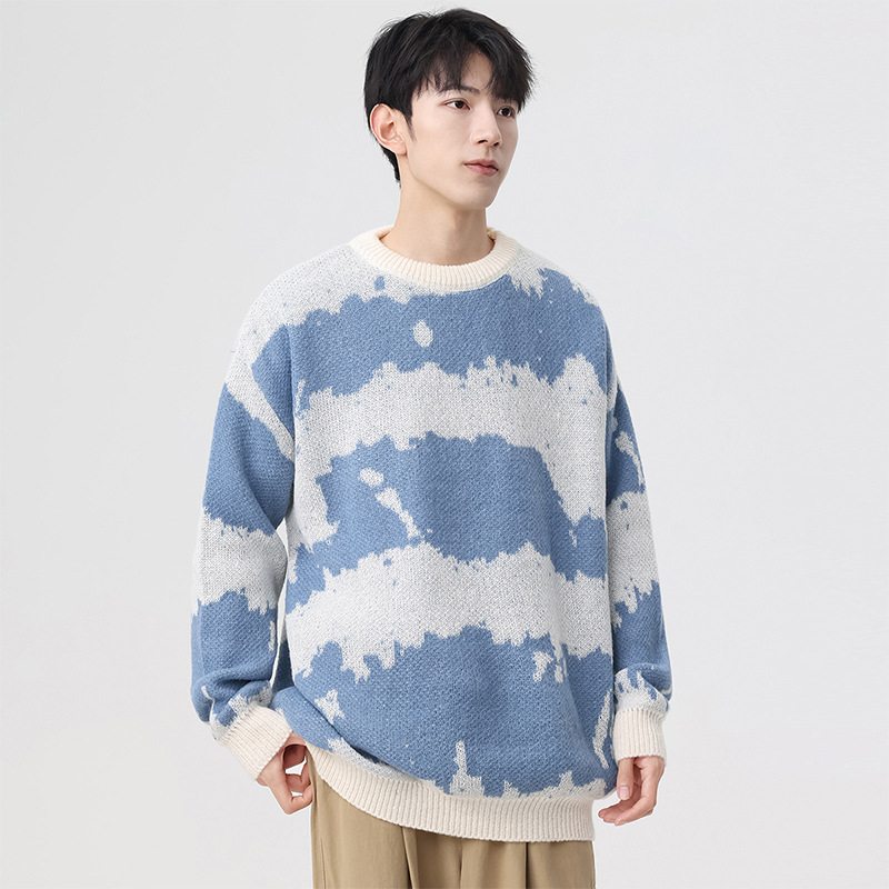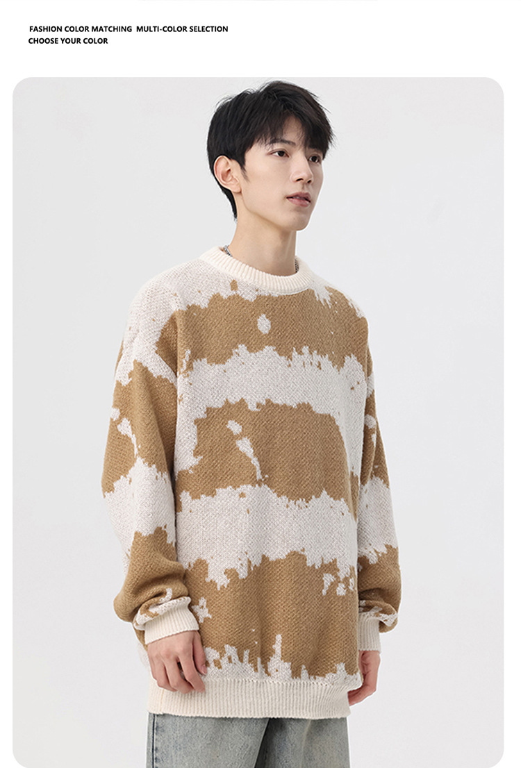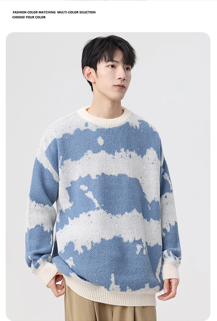 스웨터 남자 넥타이-다이 라운드 넥 봄과 가을 새로운 의상 베이스 셔츠 루즈 탑 콘트라스트 컬러 일본 레트로 니트 스웨터