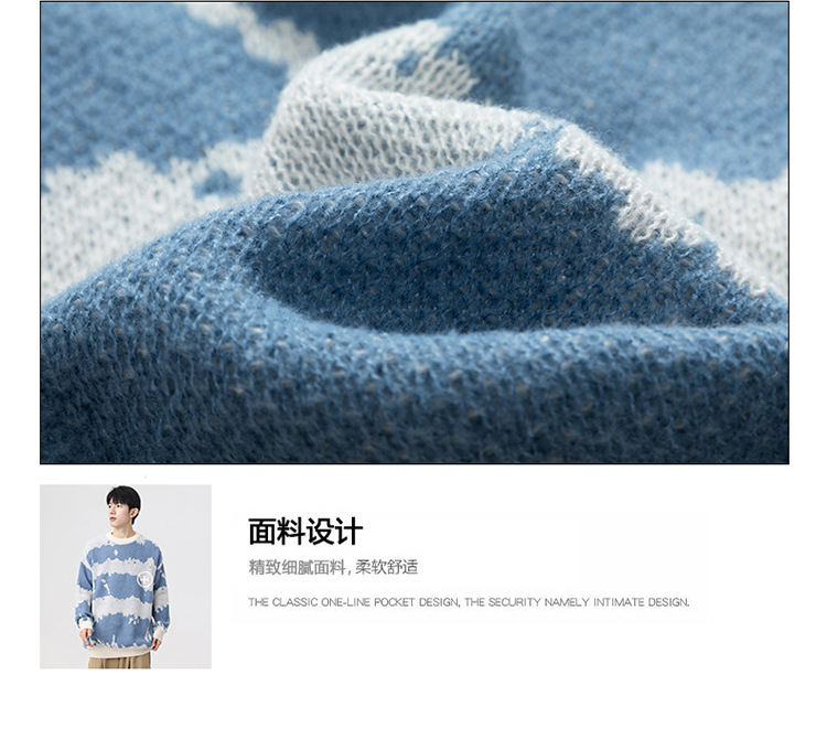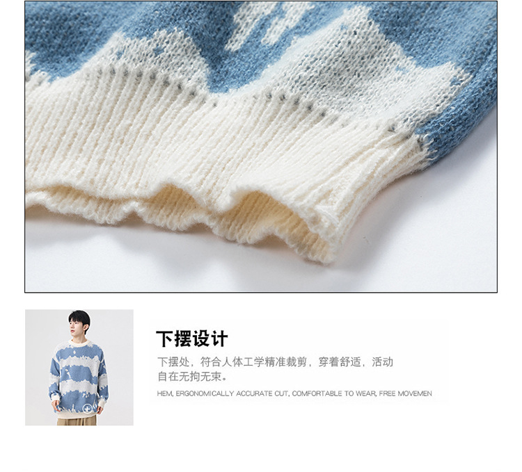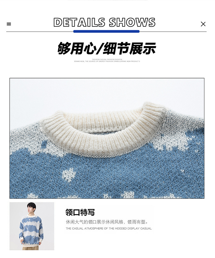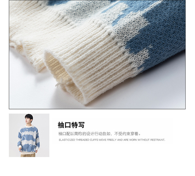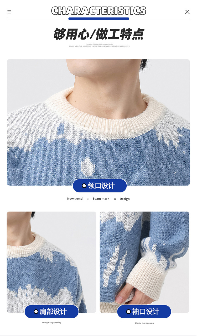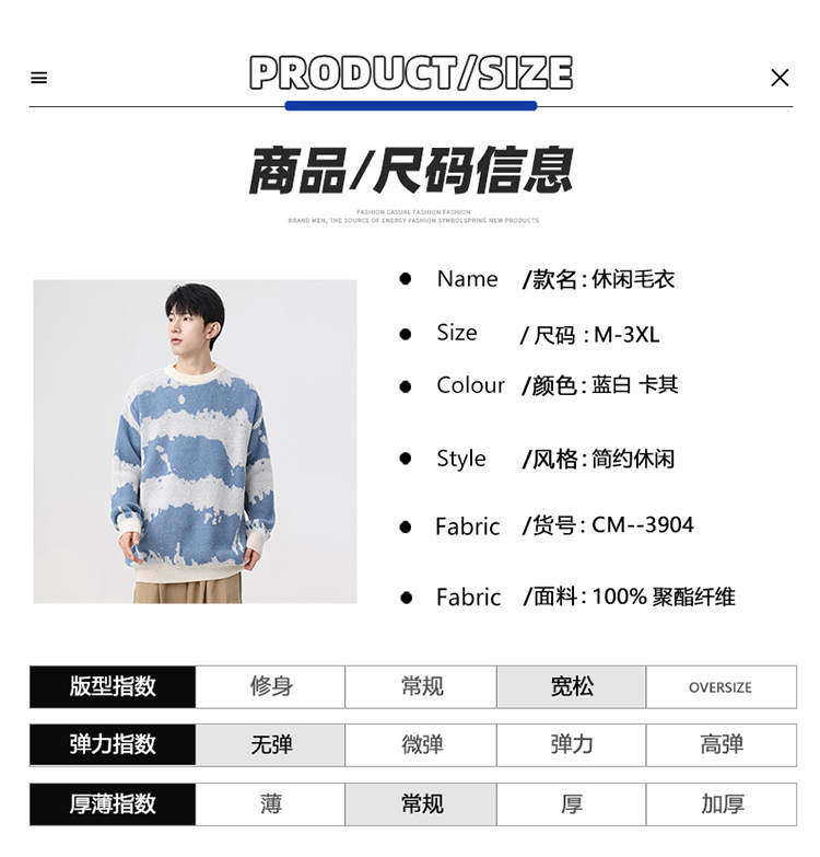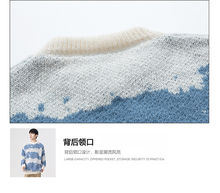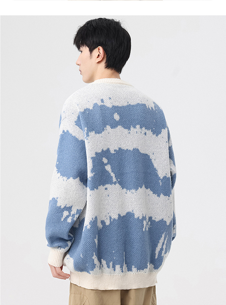 스웨터 남자 넥타이-다이 라운드 넥 봄과 가을 새로운 의상 베이스 셔츠 루즈 탑 콘트라스트 컬러 일본 레트로 니트 스웨터