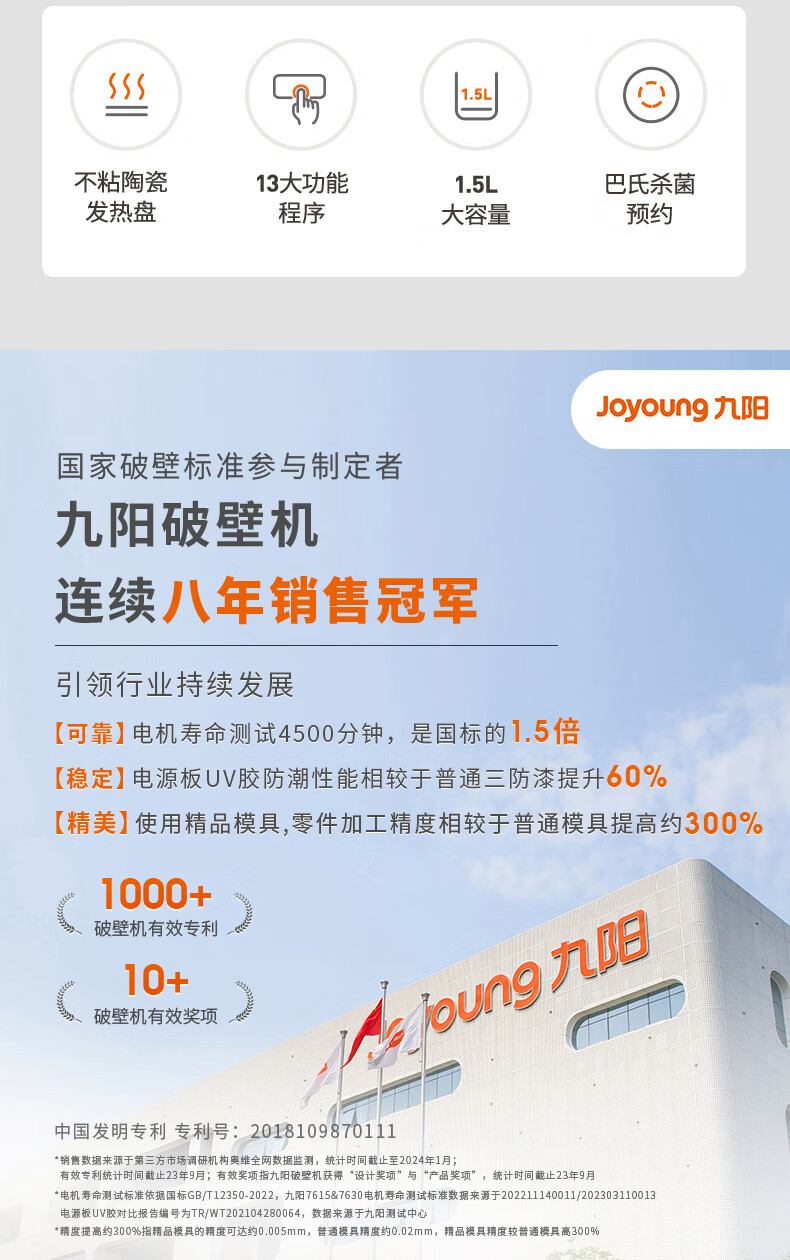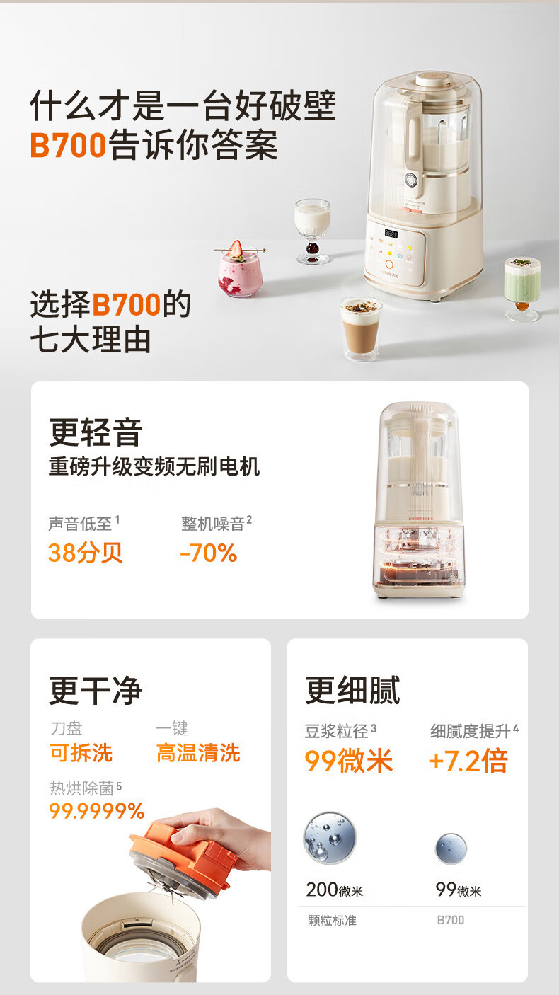 Jiuyang B700 가벼운 음실 벽 깨는 기계 1.5L 콩 우유 기계 소음 감소 과즙 요리 기계 보조 식품 기계 청소하기 쉬운스토어 가기
