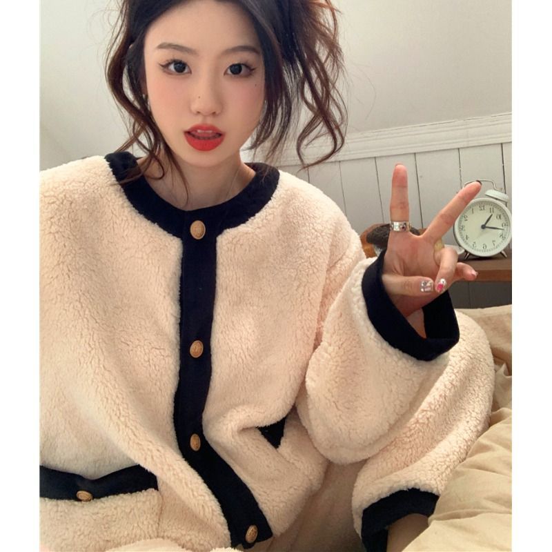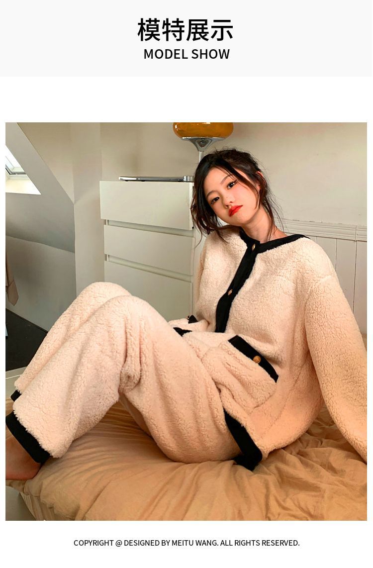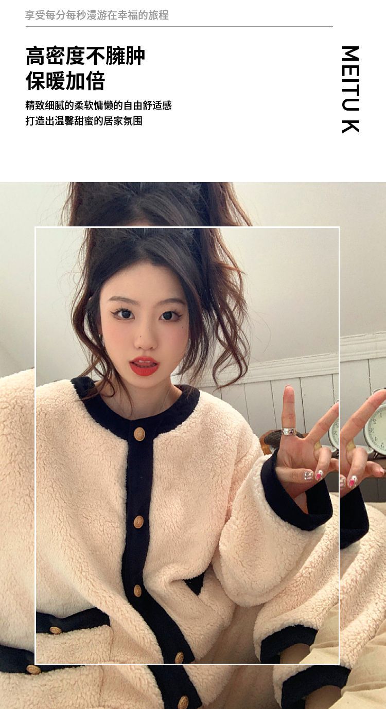 한국 스타일 산호 양털 파자마 여성의 가을과 겨울 기모 따뜻한 플란넬 홈 옷 투피스 세트