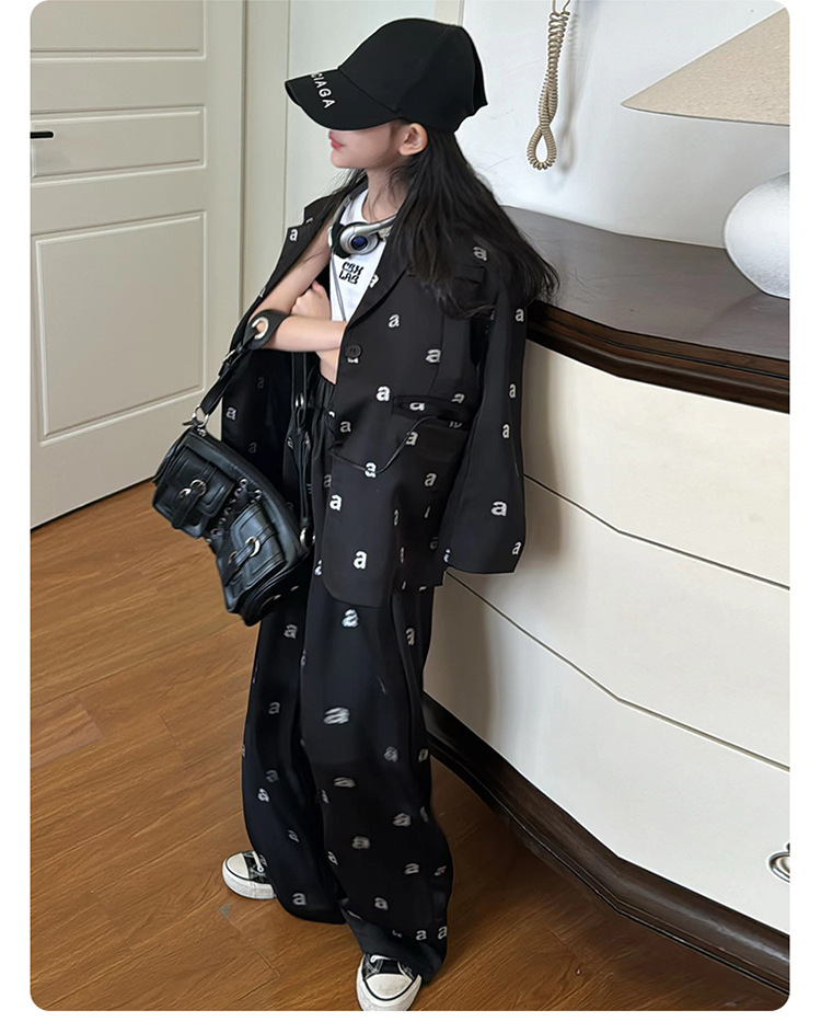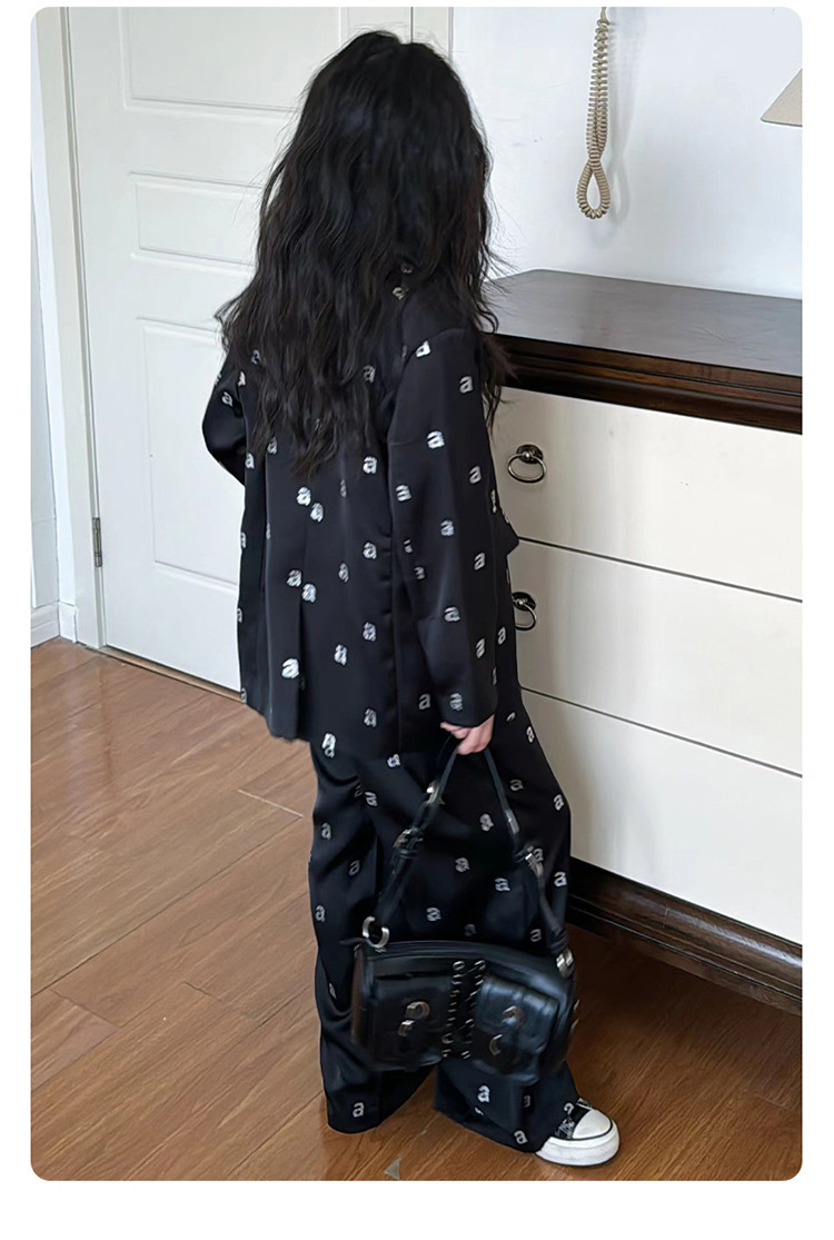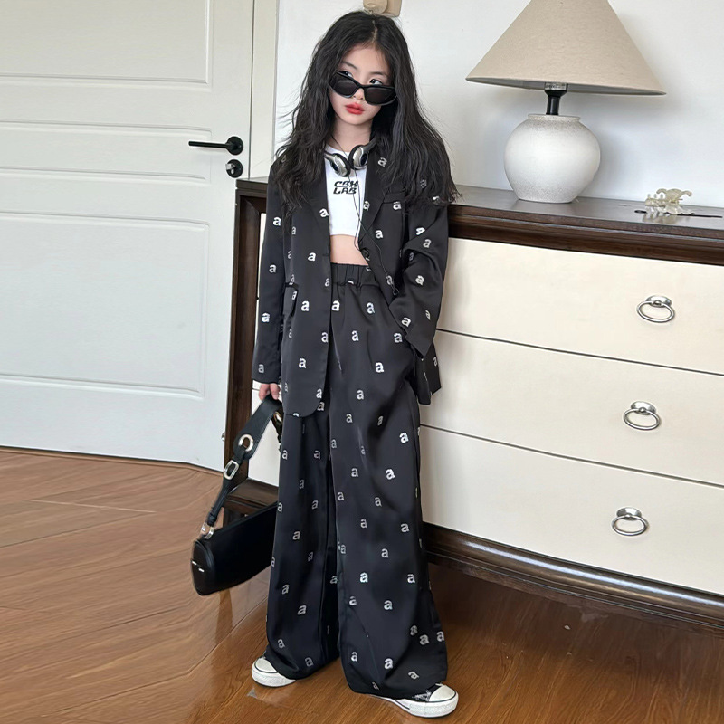 소녀의 새로운 2024 가을 코트 서양식 스트레이트 다리 바지 어린이 2 피스 세트 세트 코튼스토어 가기