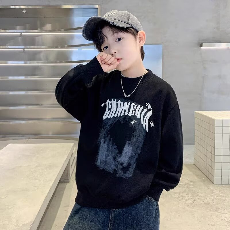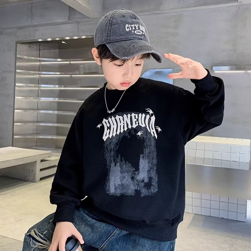 미국 스타일 남아용 스웨트셔츠 2025년 신상 가을 겨울 남아용 라운드넥 풀오버 밀크 벨벳 중대형 아동용 상의