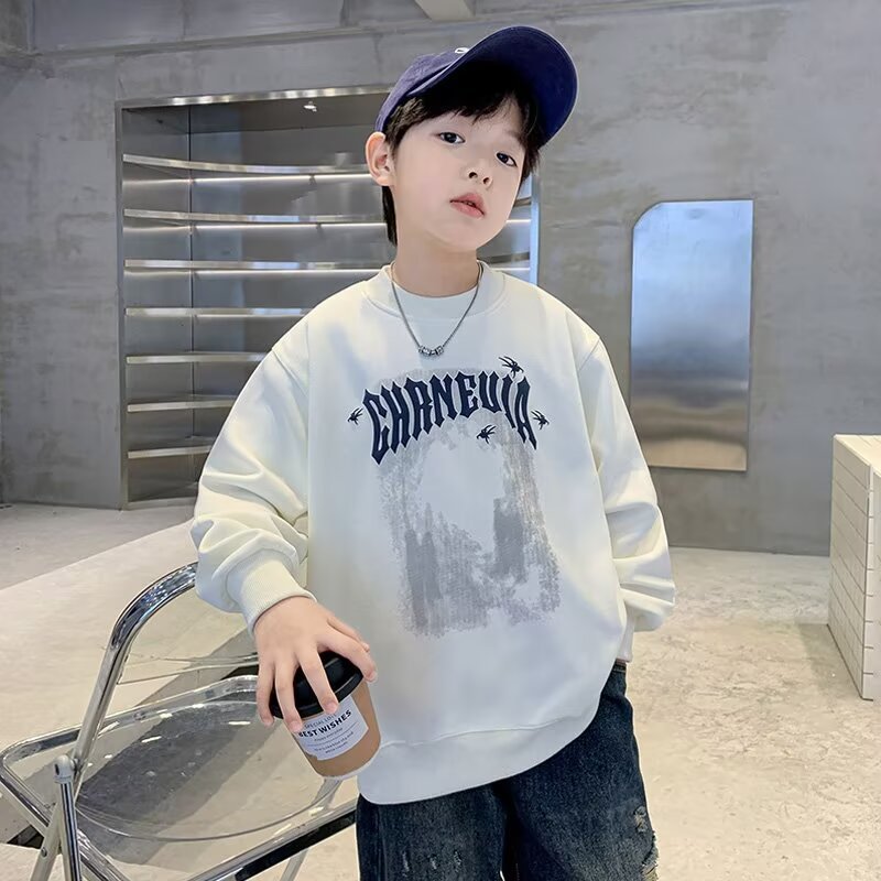미국 스타일 남아용 스웨트셔츠 2025년 신상 가을 겨울 남아용 라운드넥 풀오버 밀크 벨벳 중대형 아동용 상의스토어 가기