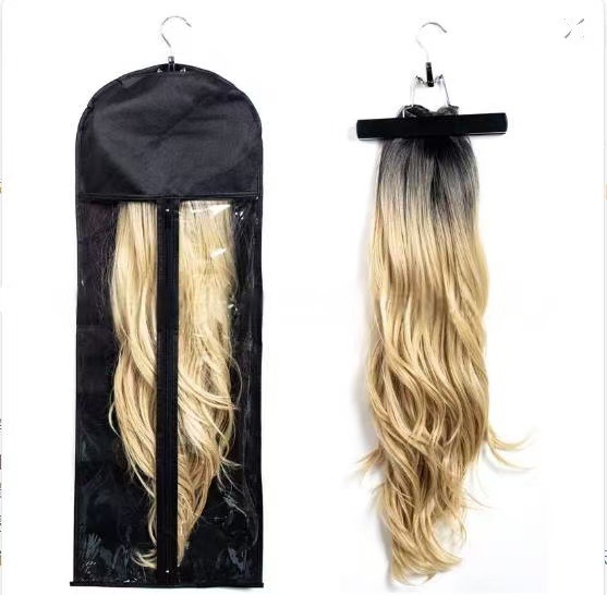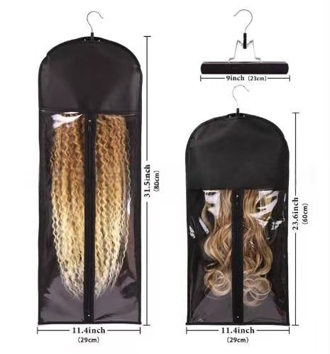 가발 가방 부직포 지퍼 가발 보관 가방 투명 PVC 가발 방진 가방 옷걸이 인쇄 가능한 로고