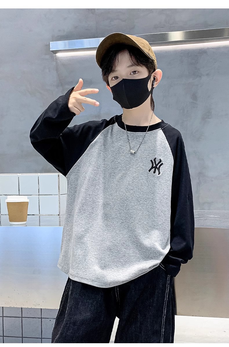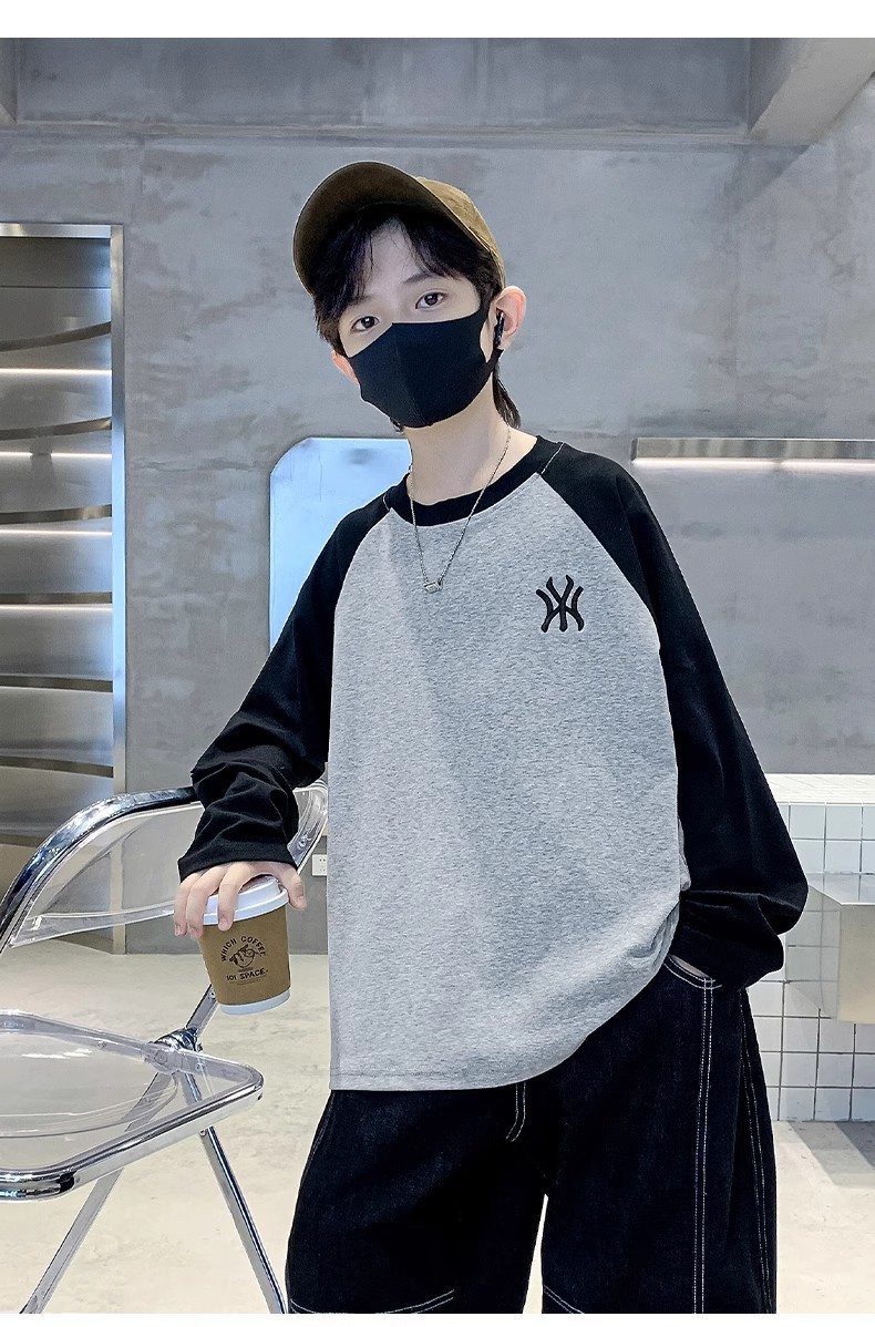 남학생의 반 높이 칼라베이스 셔츠 가을과 겨울 어린이 겨울 따뜻한 탑 빅 보이 미들 칼라 벨벳 이너 탑스토어 가기