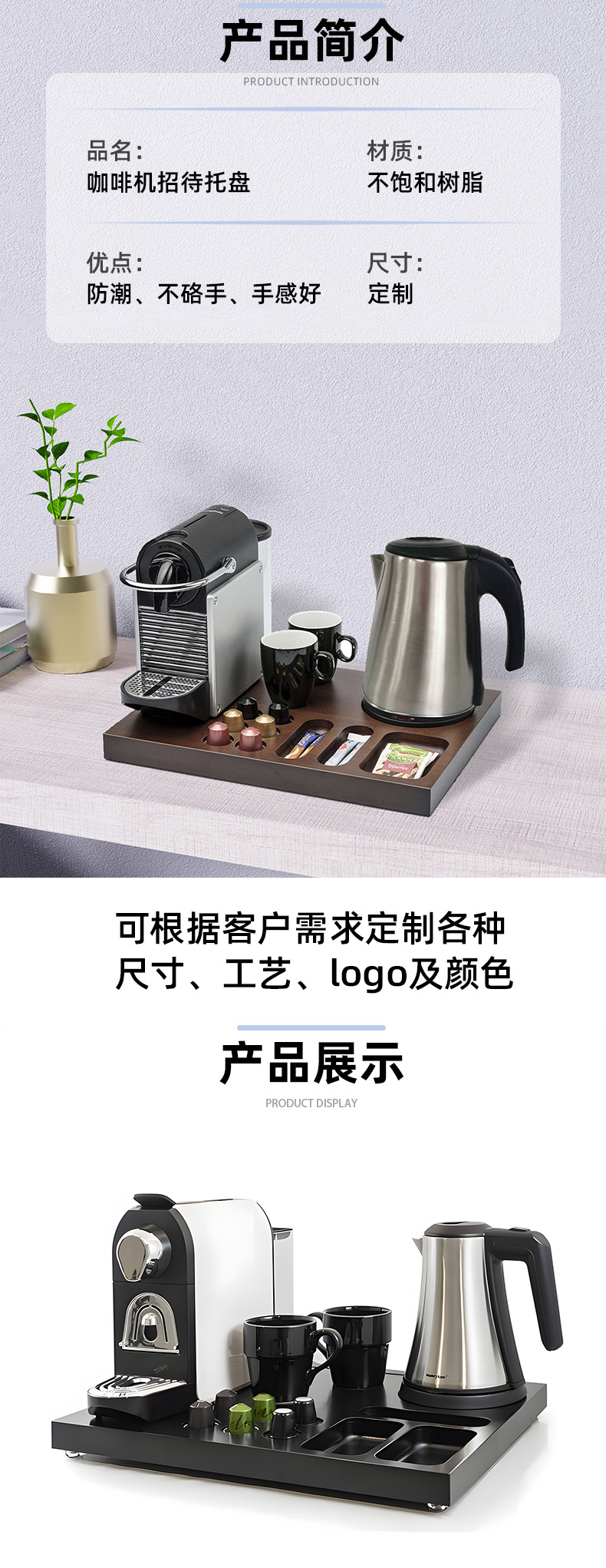 유럽과 미국의 호텔 트레이 전기 주전자 커피 기계 트레이 워터 컵 입 커피 캡슐 티백 저장 트레이