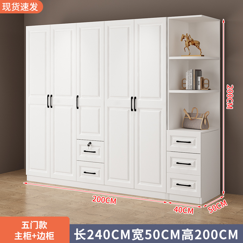 솔리드 우드 옷장 홈 침실 유럽식 렌탈 룸 사물함 어린이 간단한 가방 설치 4 도어 및 5 도어 대형 옷장