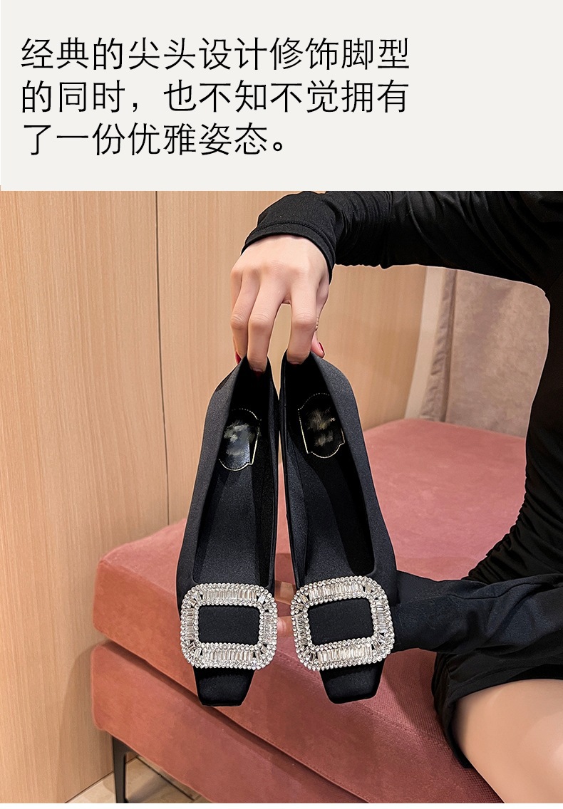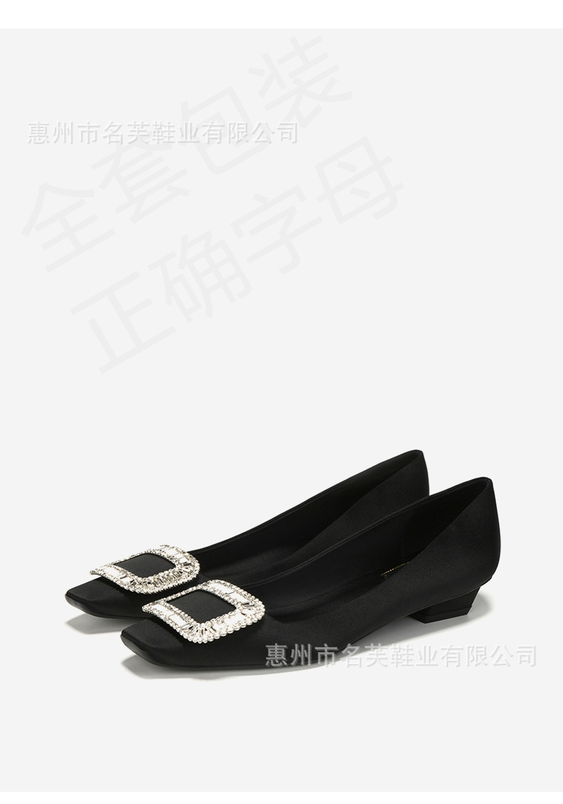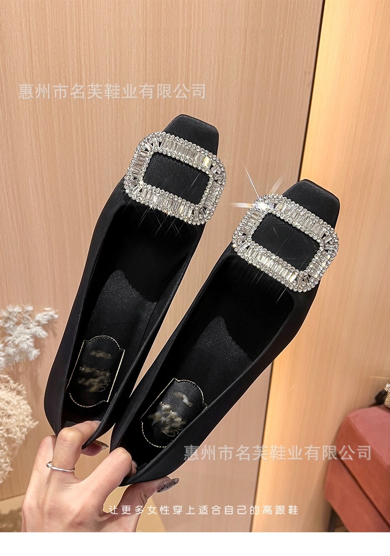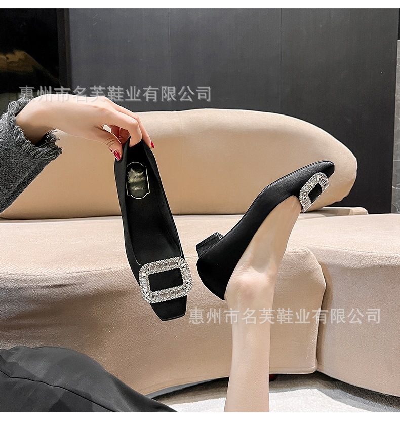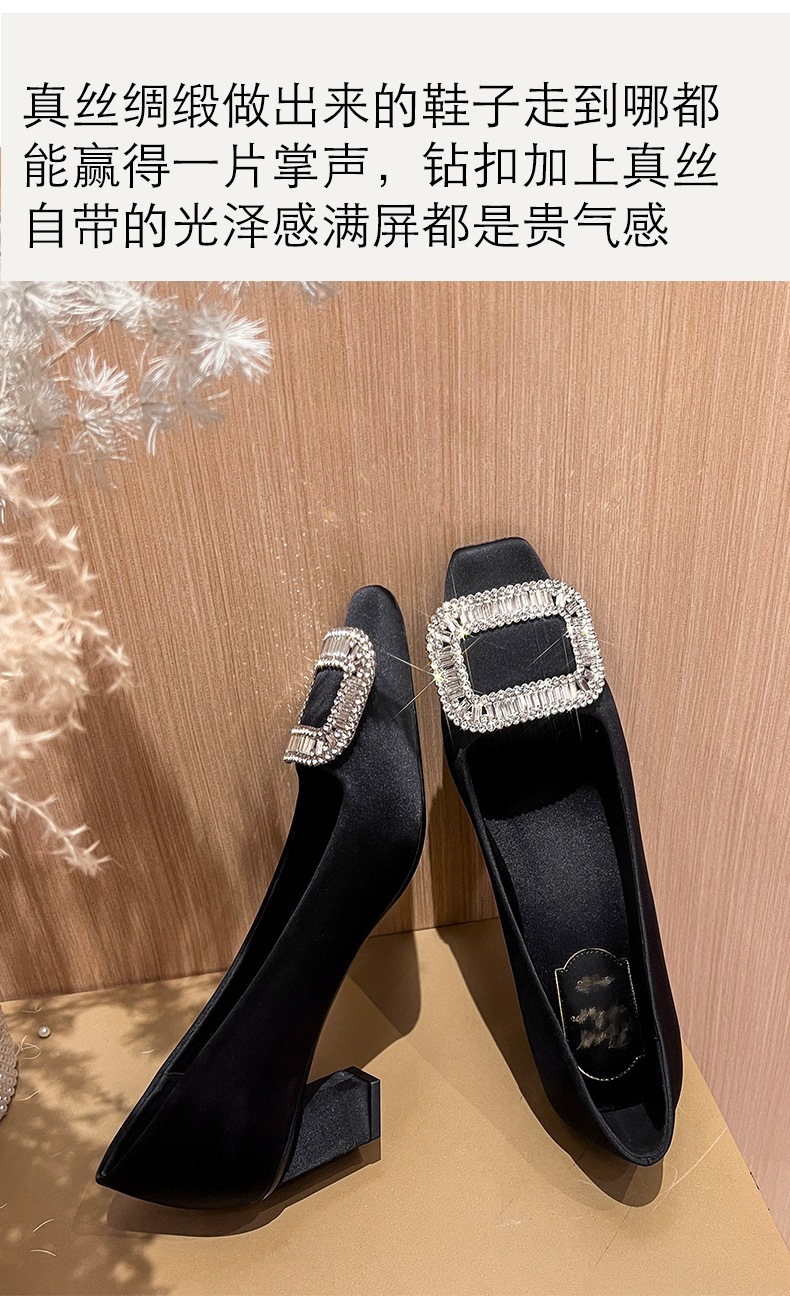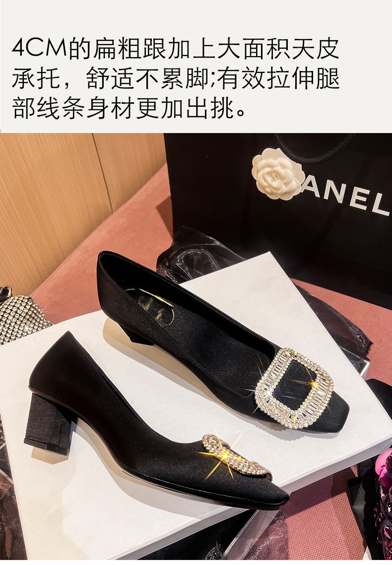 고급형 RV 사각 버클 워터드라인 큐빅 굽 높은 여성용 구두 2025년 신상 봄 가을 실크 새틴 사각코 얕은 굽 높은 구두스토어 가기