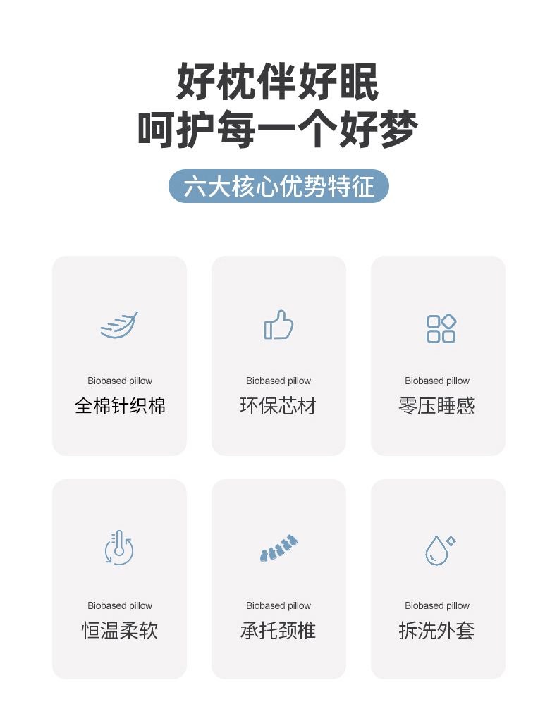 바이오 기반 제로 압력 베개 코어 콩 기반 슈퍼 벨벳 소프트 부모 자식 베개 메모리면 성인 목 베개 수면에 도움
