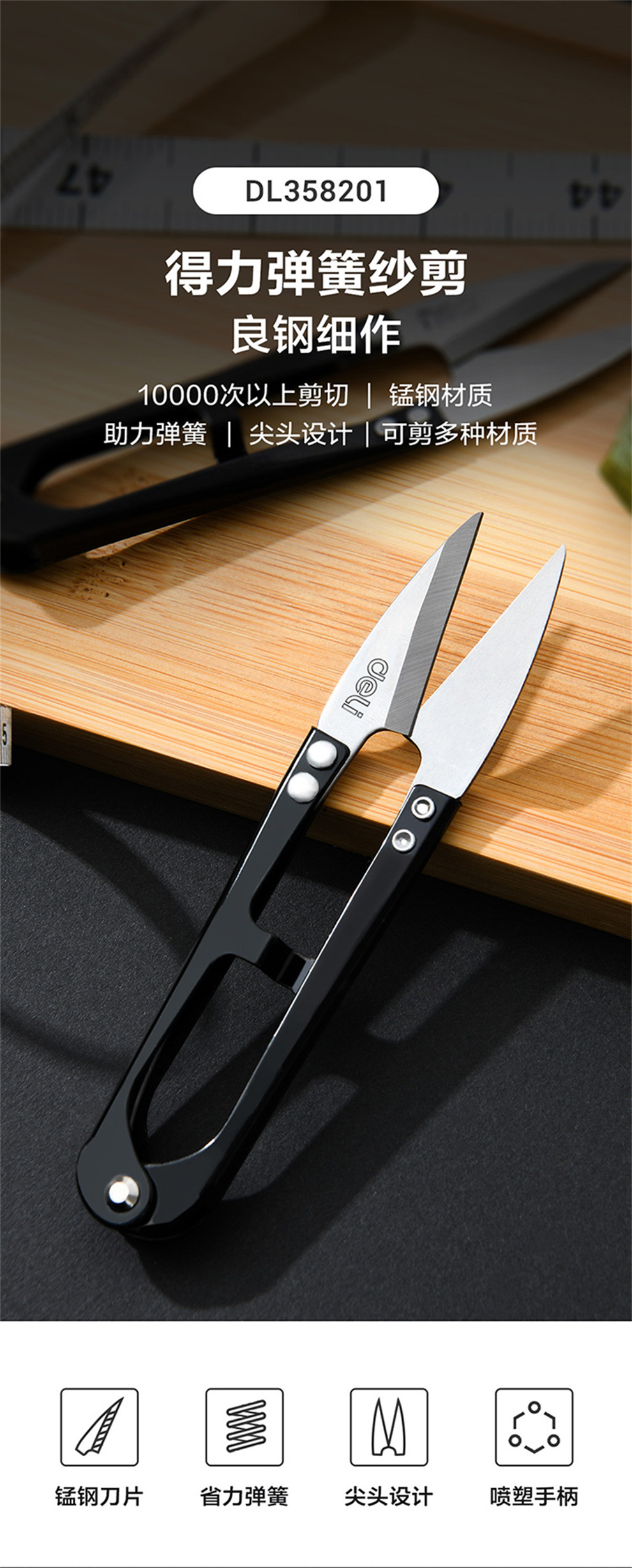 델리 DL358201 실 전단 실 스프링 작은 가위 재단사 가위 U 컷 양날 의류 가위 107mm