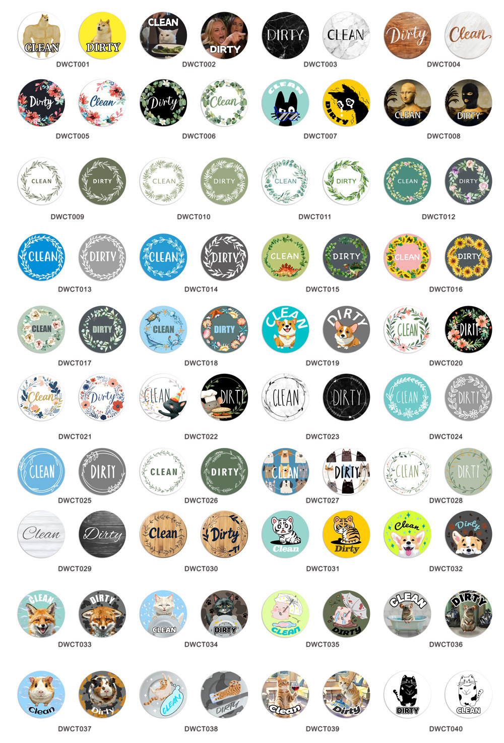 DWCT001-040 국경 간 식기 세척기 더러운 자석 마커 양면 자기 로고 깨끗한 표시스토어 가기