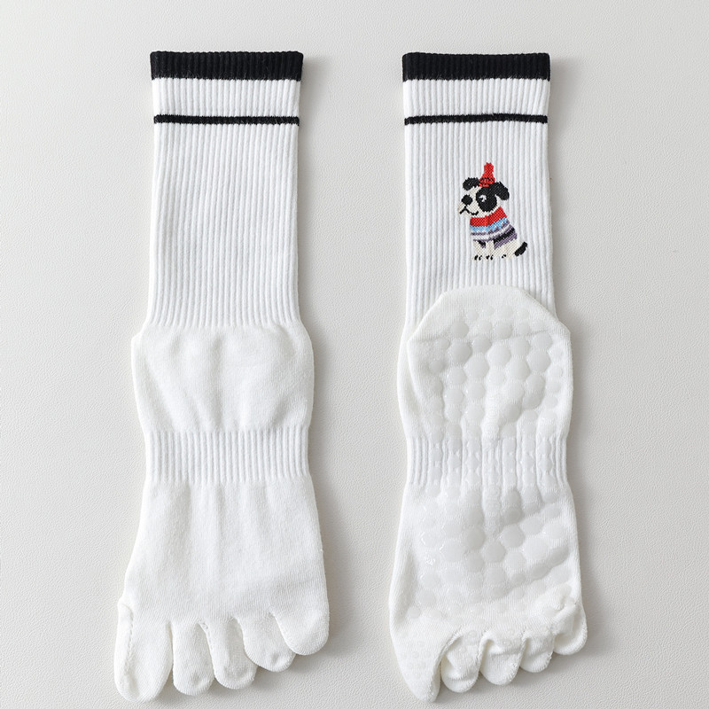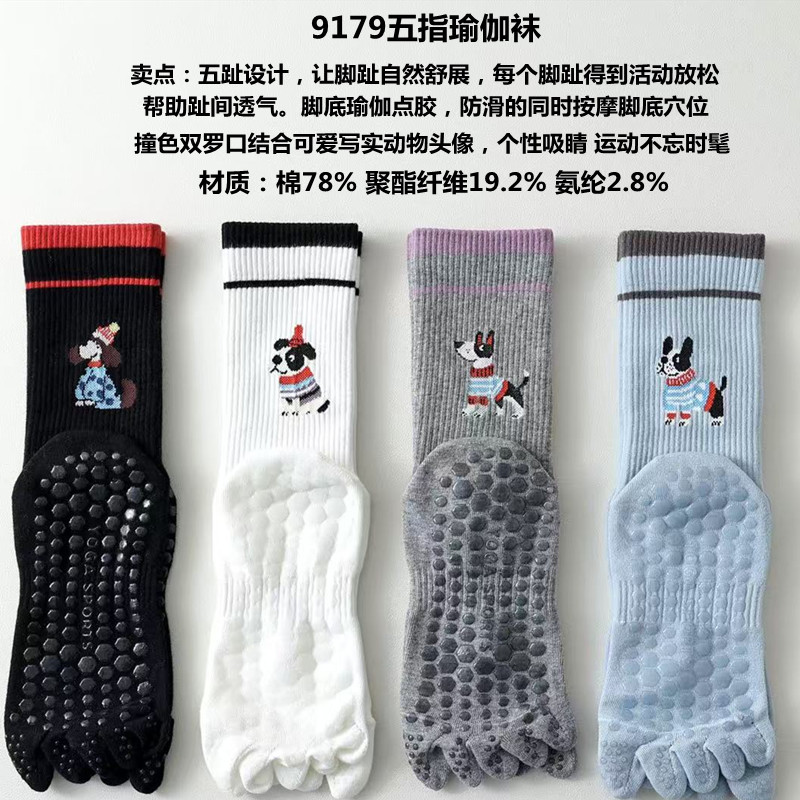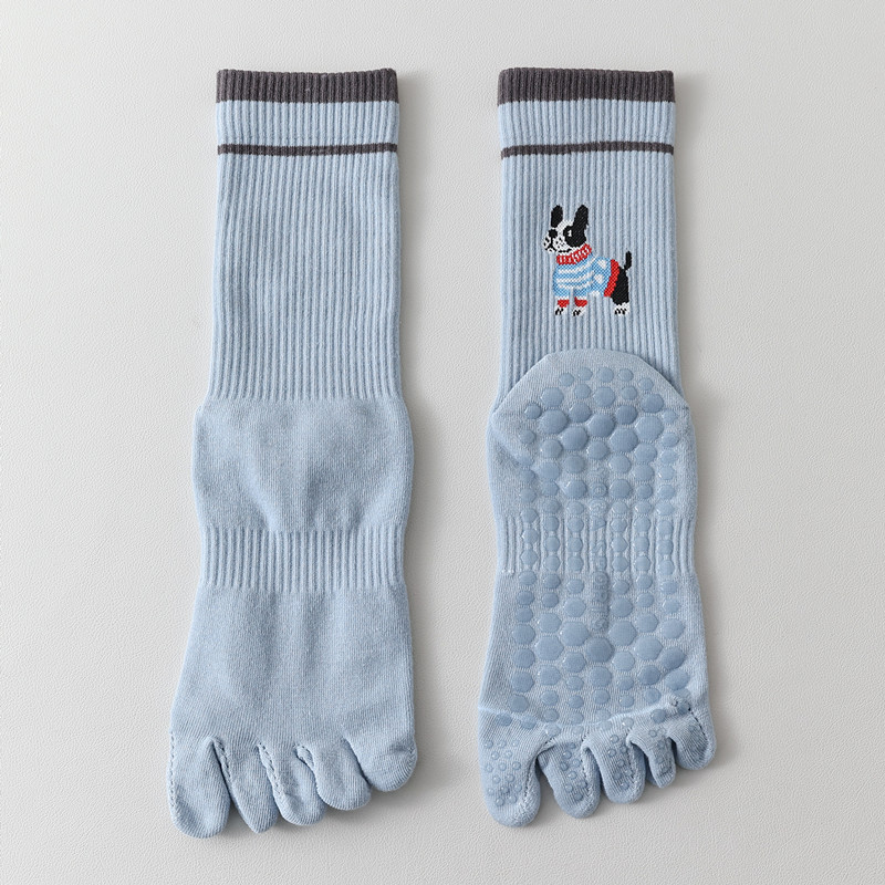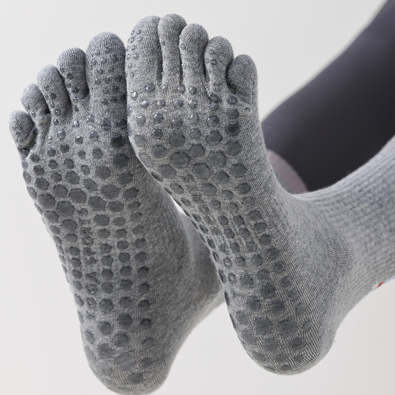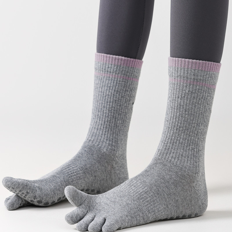 다섯 손가락 요가 양말 중간 튜브 양말 필라테스 전문 미끄럼 방지 피트니스 양말 여성 봄 및 가을 스포츠 특수 발가락 면 양말스토어 가기