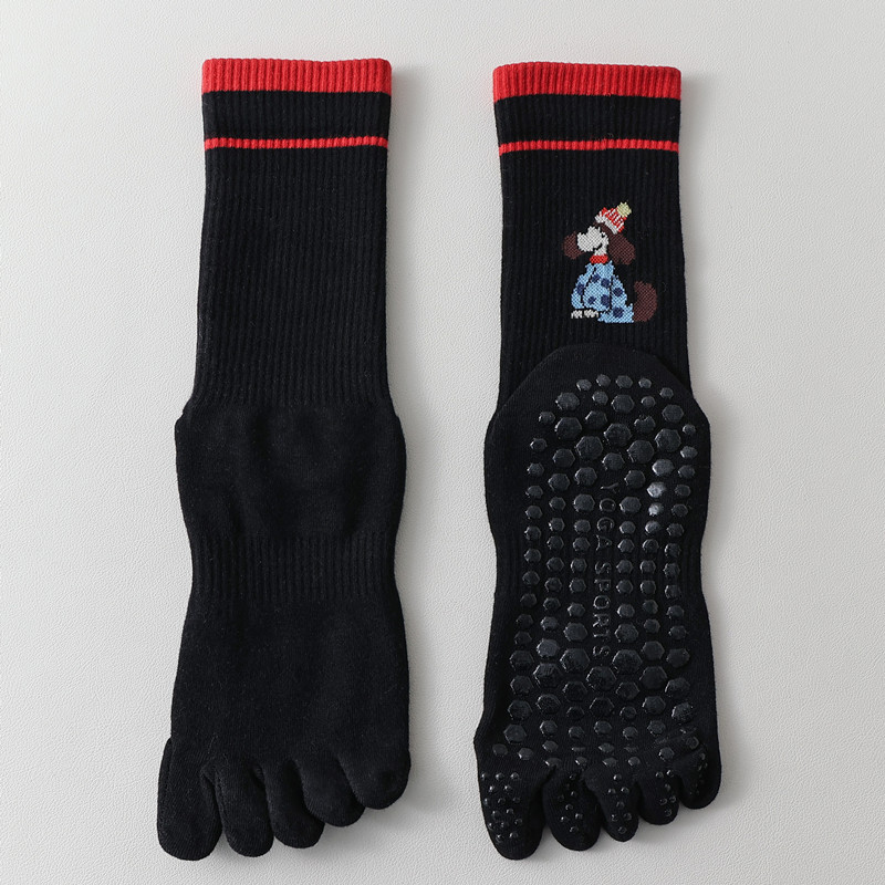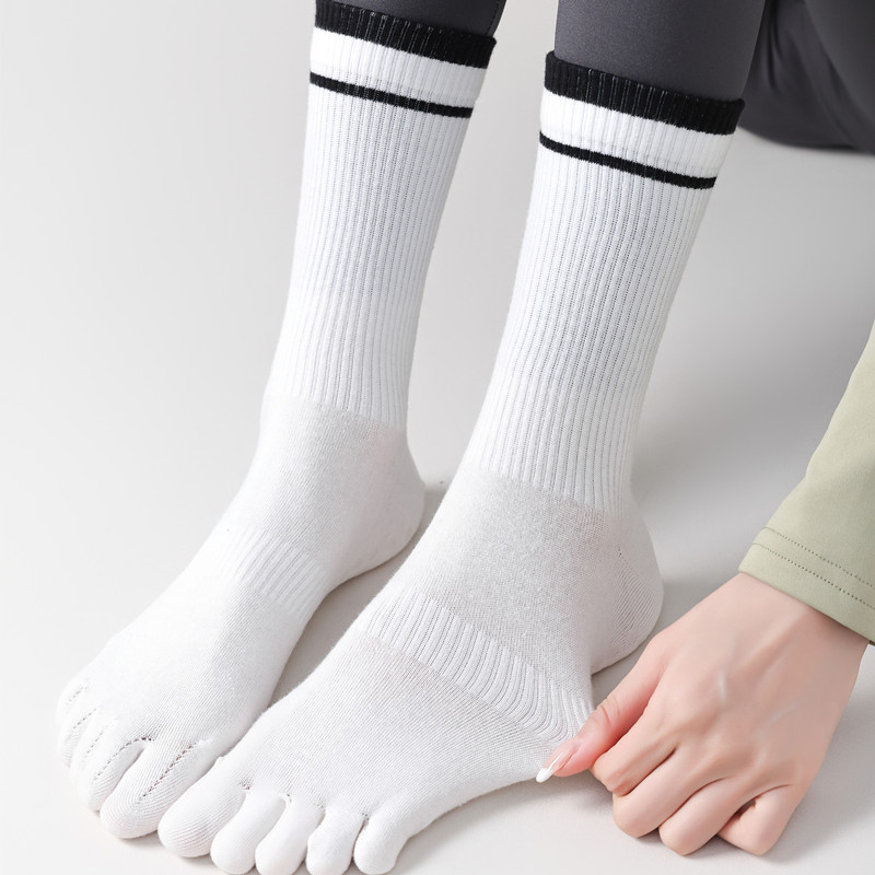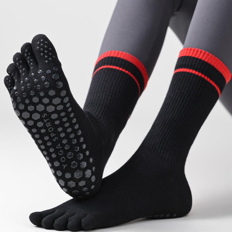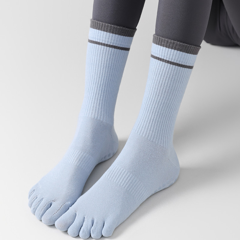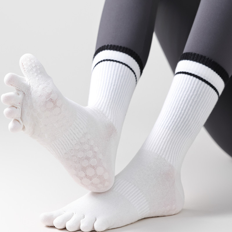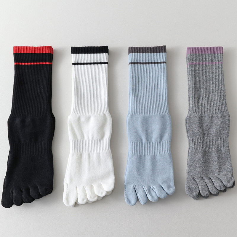 다섯 손가락 요가 양말 중간 튜브 양말 필라테스 전문 미끄럼 방지 피트니스 양말 여성 봄 및 가을 스포츠 특수 발가락 면 양말