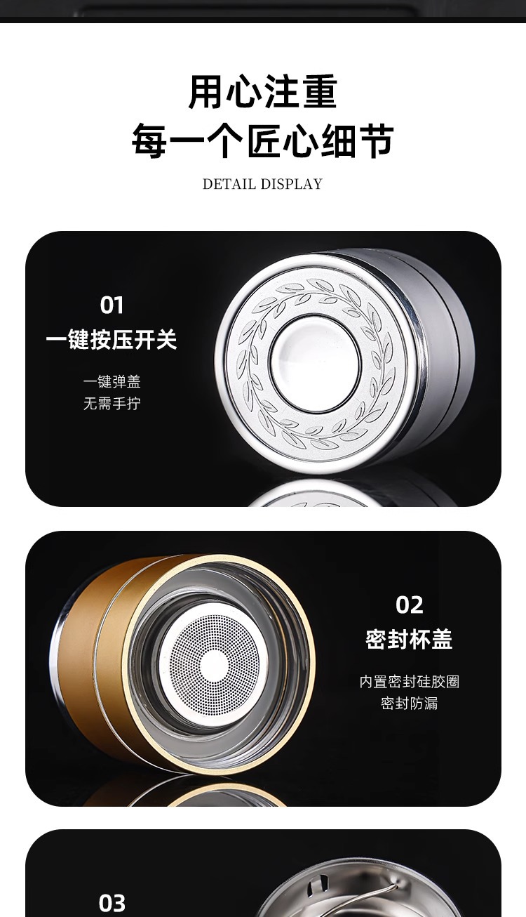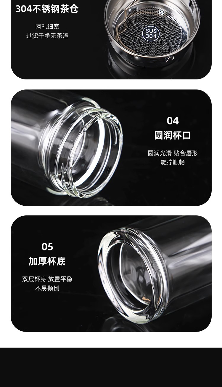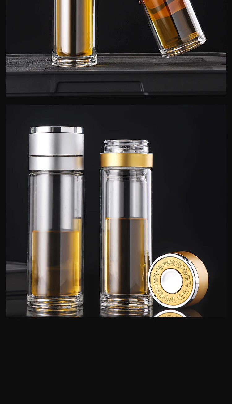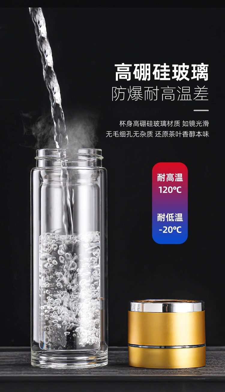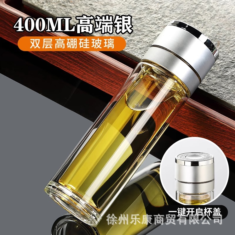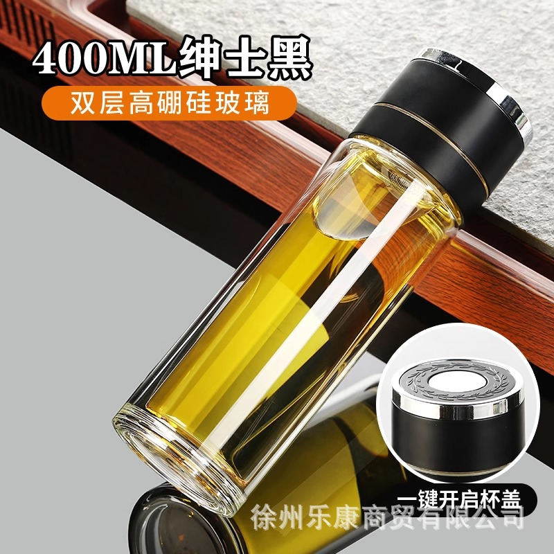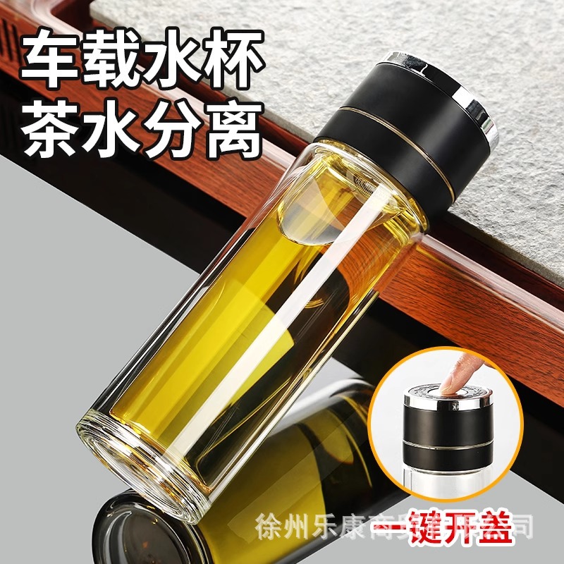 원 버튼 오픈 뚜껑 유리 더블 레이어 두껍게 남성 단열 방지 거품 컵 고온 내성 비즈니스 자동차 물 컵