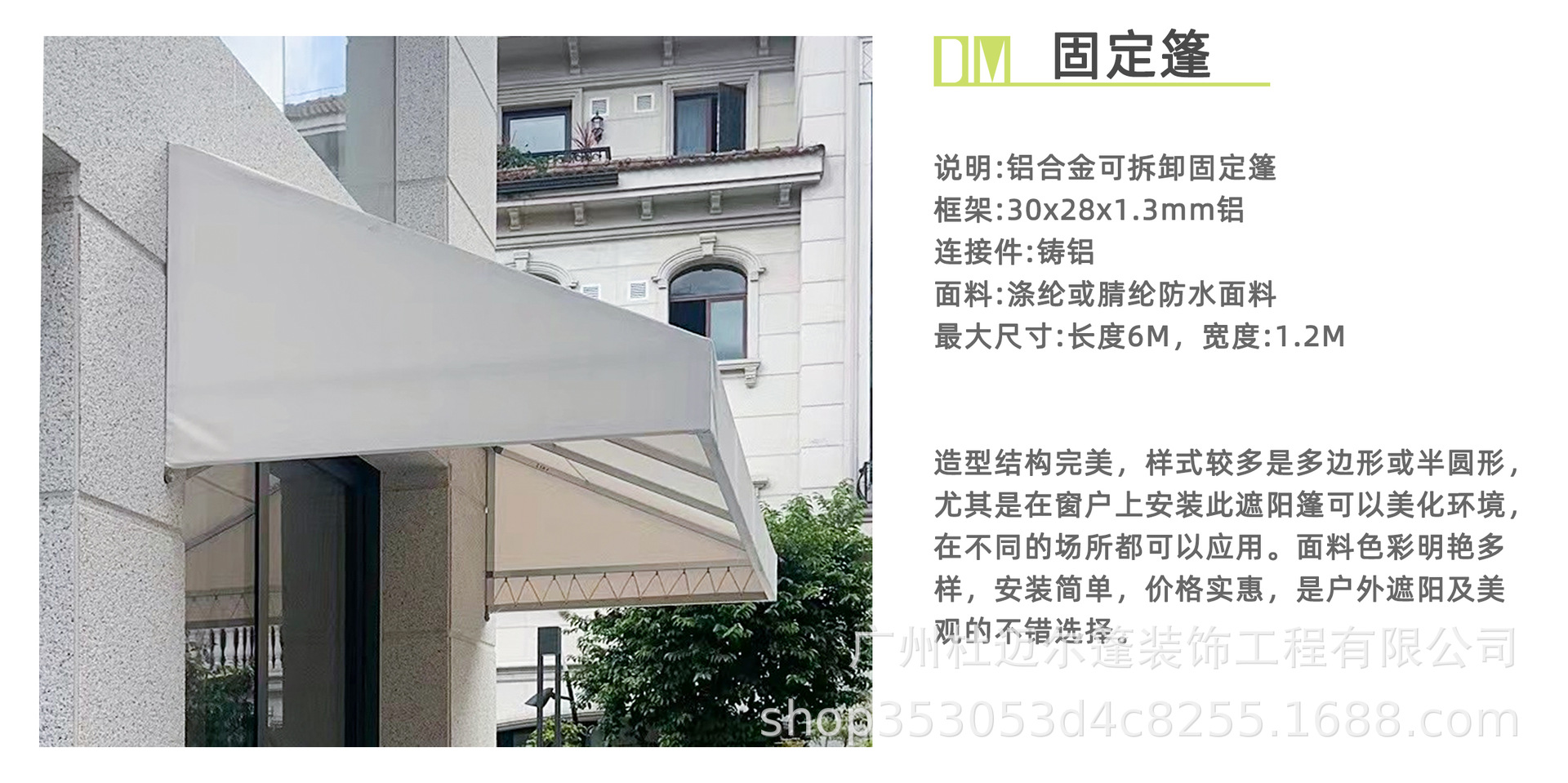프랑스 차양 사다리꼴 고정 창고 매장 카페 유럽 스타일의 새로운 장식 캐노피 야외 문 비