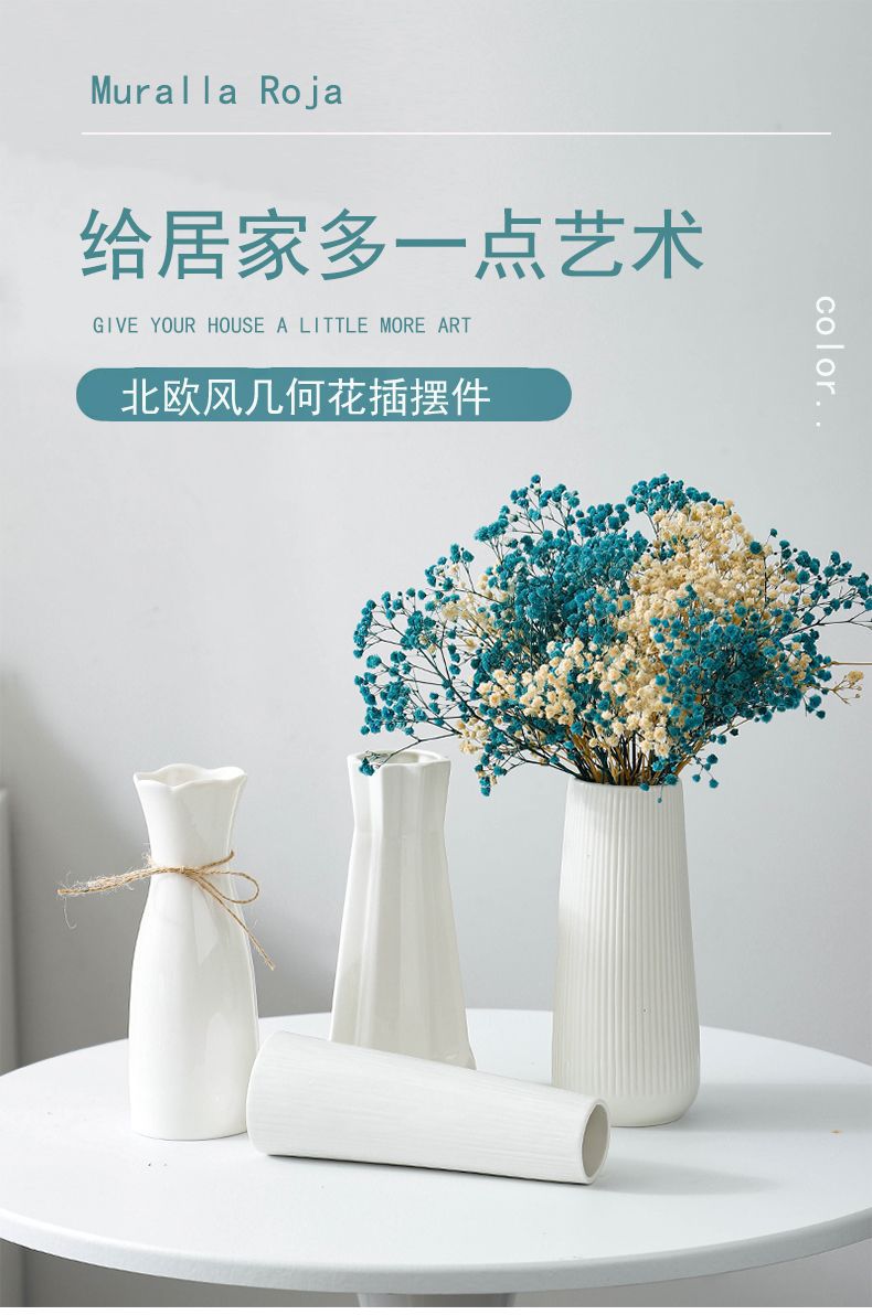 유럽식 장미 꽃꽂이 꽃병 흰색 간단한 세라믹 꽃 거실 테이블 말린 꽃 수경 장식 장식품스토어 가기