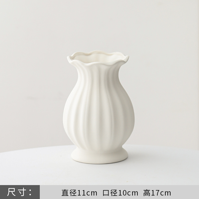 유럽식 장미 꽃꽂이 꽃병 흰색 간단한 세라믹 꽃 거실 테이블 말린 꽃 수경 장식 장식품