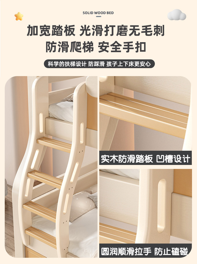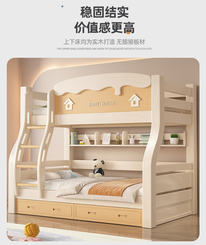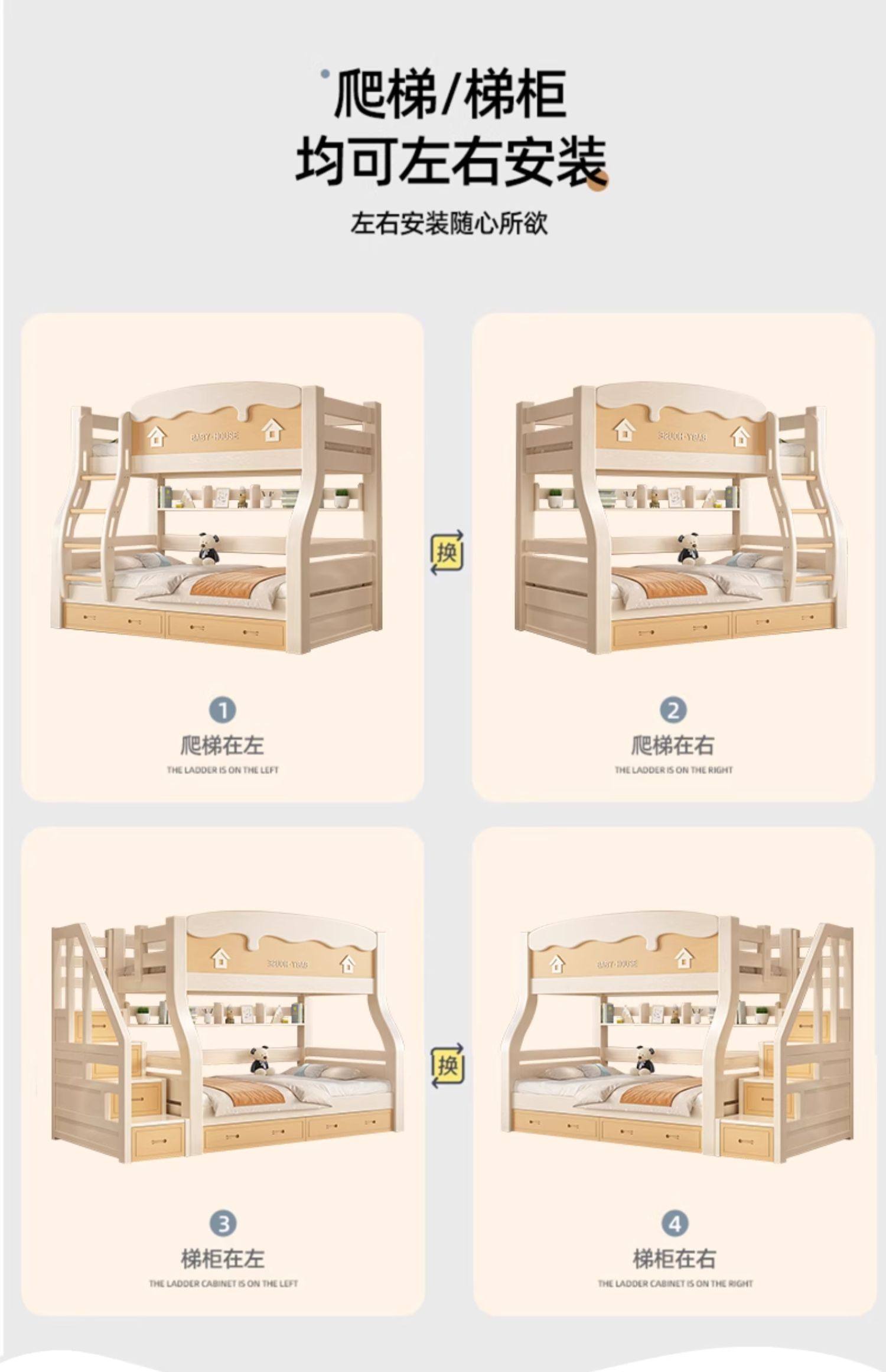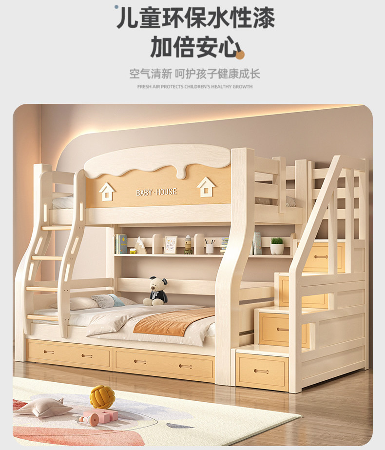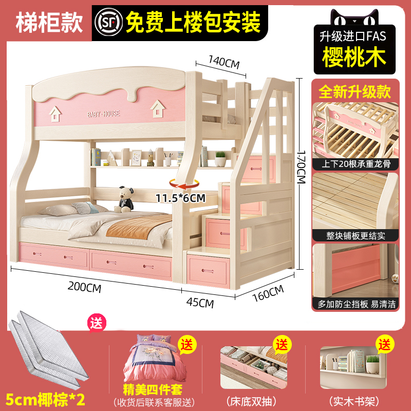 체리 우드 벙크 침대 벙크 침대 다기능 더블 침대 솔리드 우드 벙크 침대 높고 낮은 침대 어린이 나무 침대스토어 가기