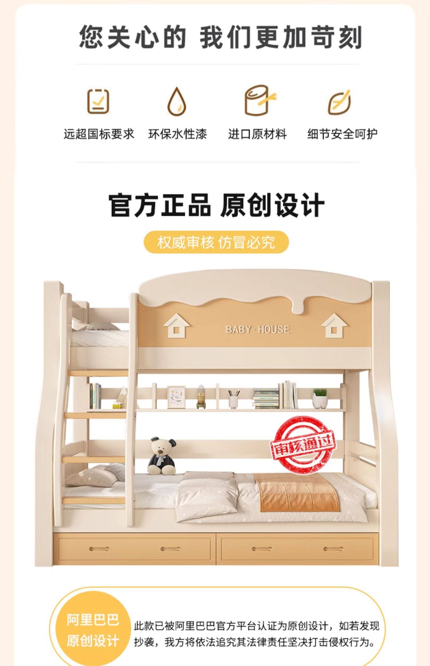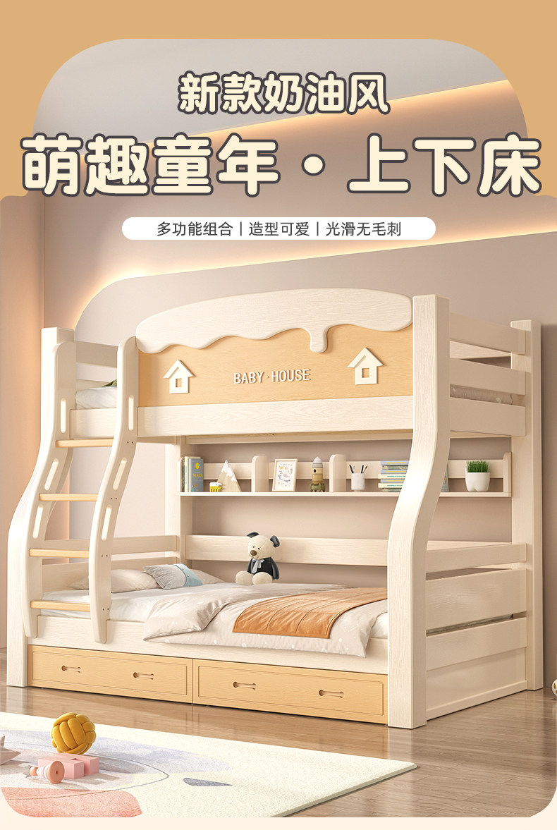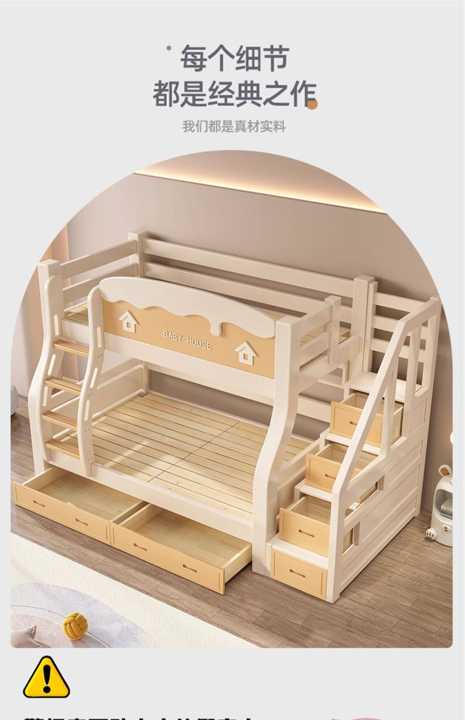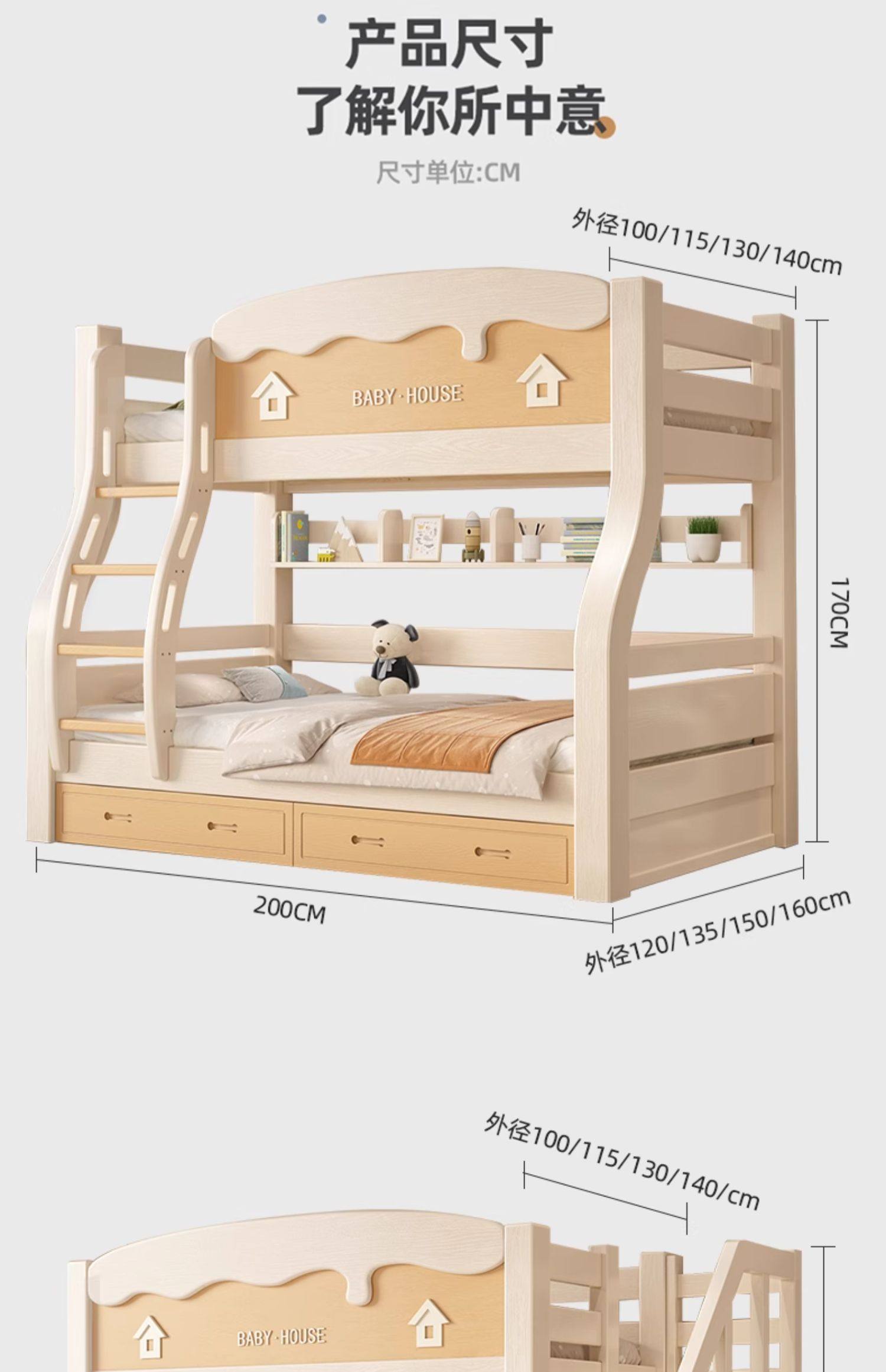 체리 우드 벙크 침대 벙크 침대 다기능 더블 침대 솔리드 우드 벙크 침대 높고 낮은 침대 어린이 나무 침대스토어 가기