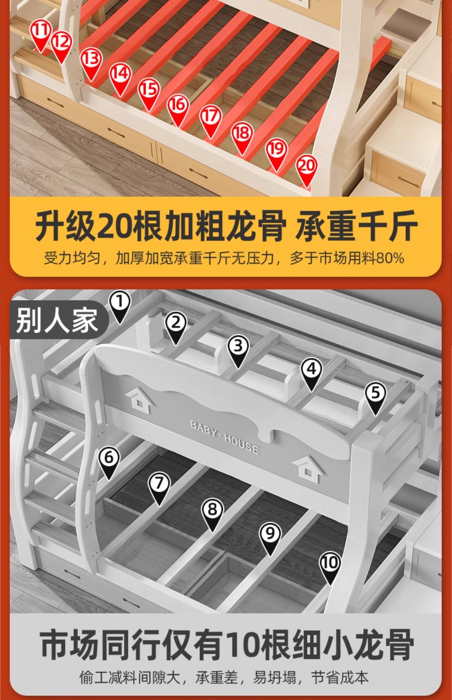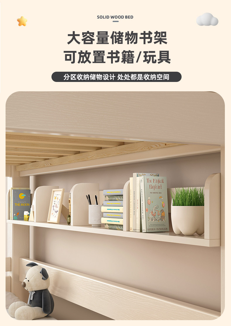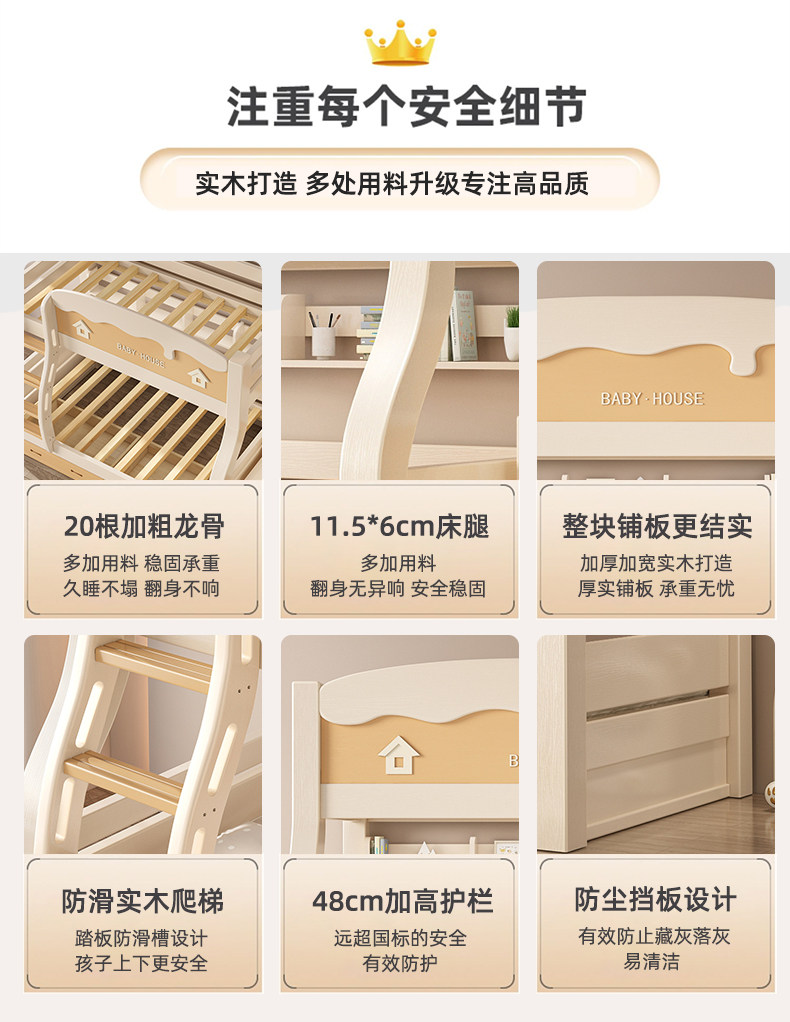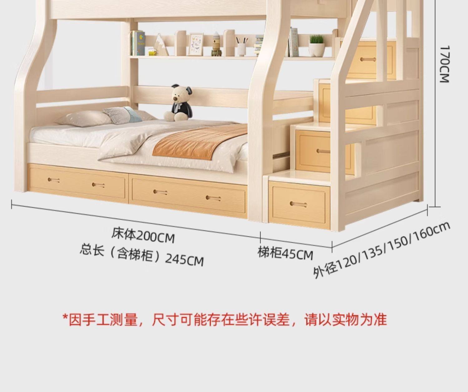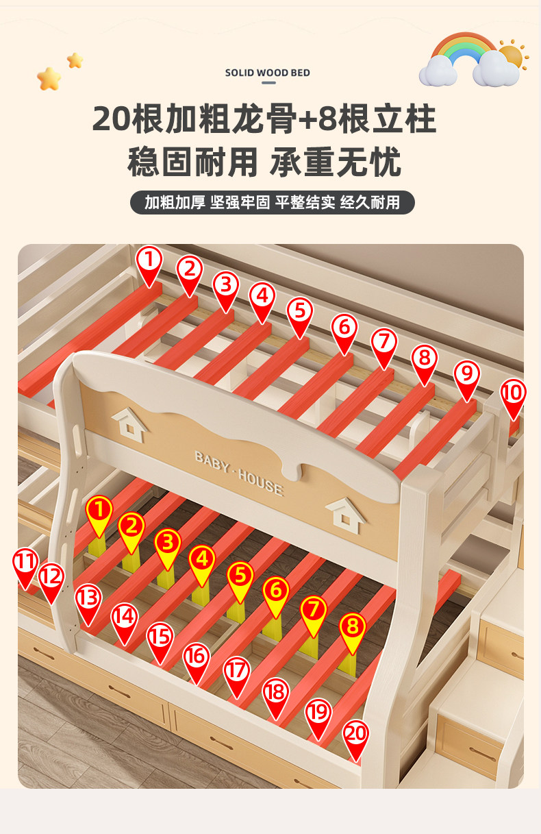 체리 우드 벙크 침대 벙크 침대 다기능 더블 침대 솔리드 우드 벙크 침대 높고 낮은 침대 어린이 나무 침대스토어 가기