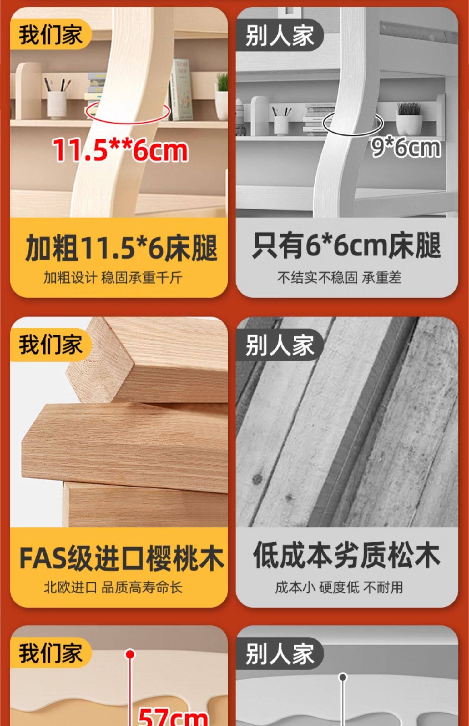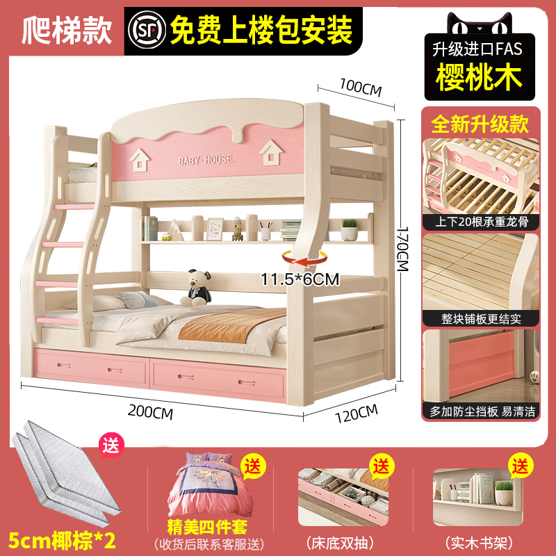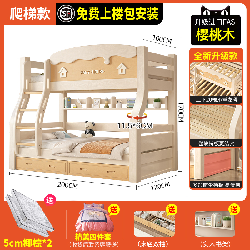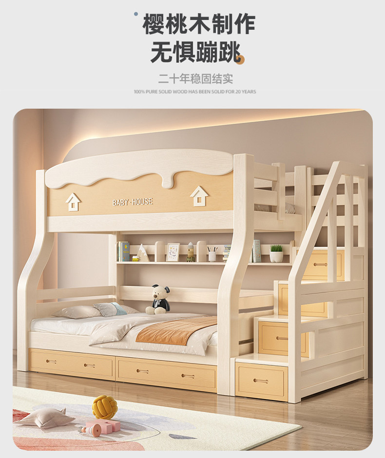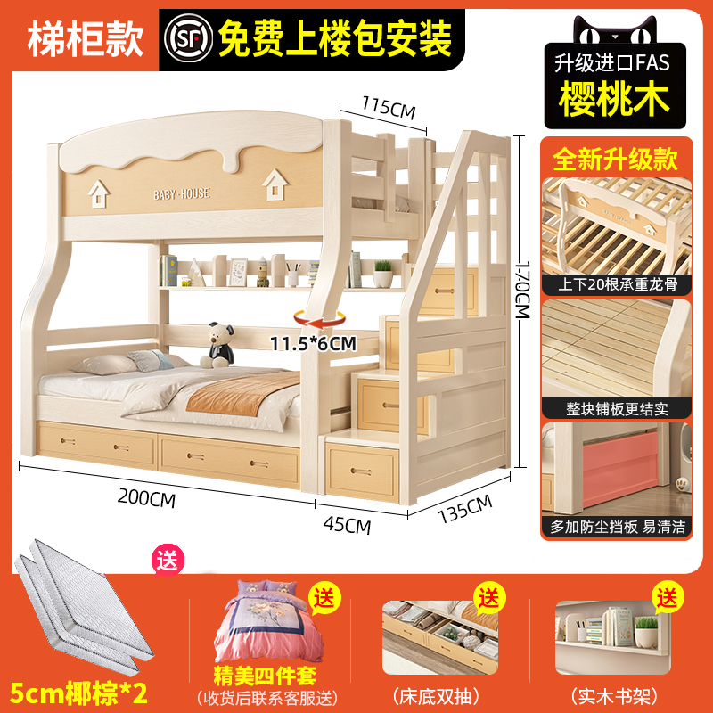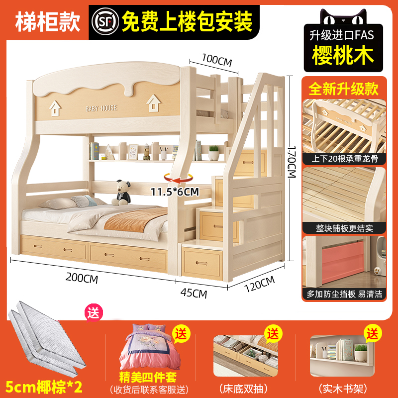 체리 우드 벙크 침대 벙크 침대 다기능 더블 침대 솔리드 우드 벙크 침대 높고 낮은 침대 어린이 나무 침대