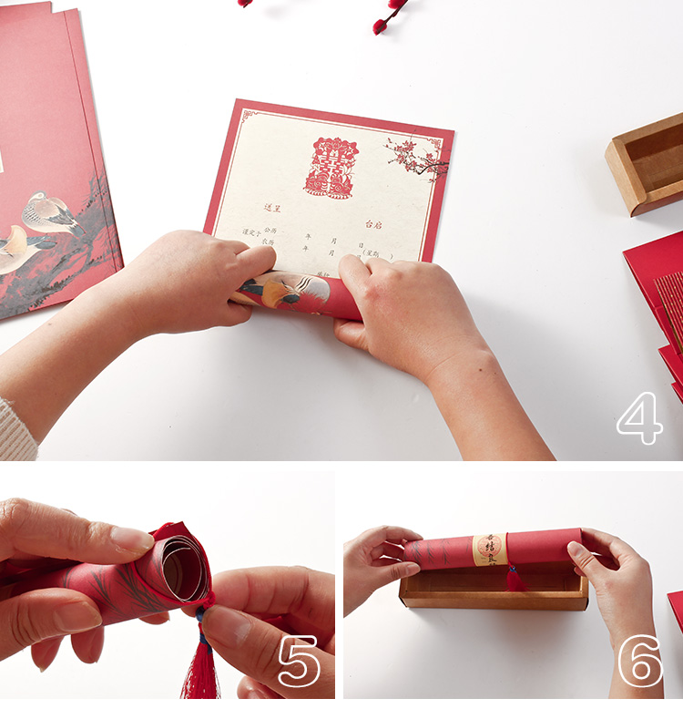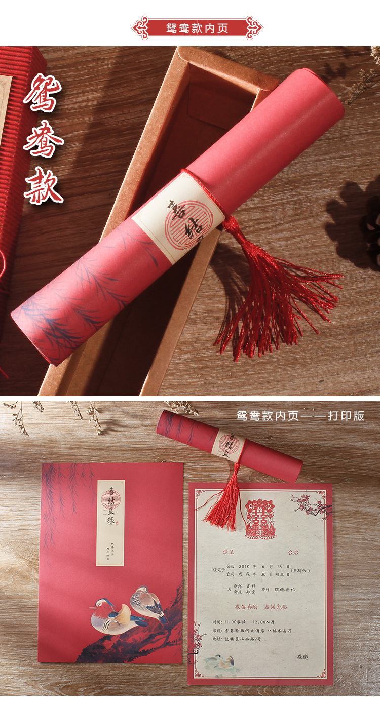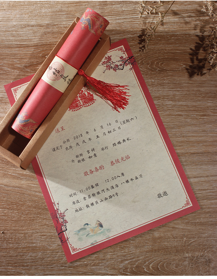 개인화 된 스크롤 복고풍 초대장 결혼식 창조적 인 초대장 중국 전통 중국 스타일 국가 조수 결혼식 초대장스토어 가기