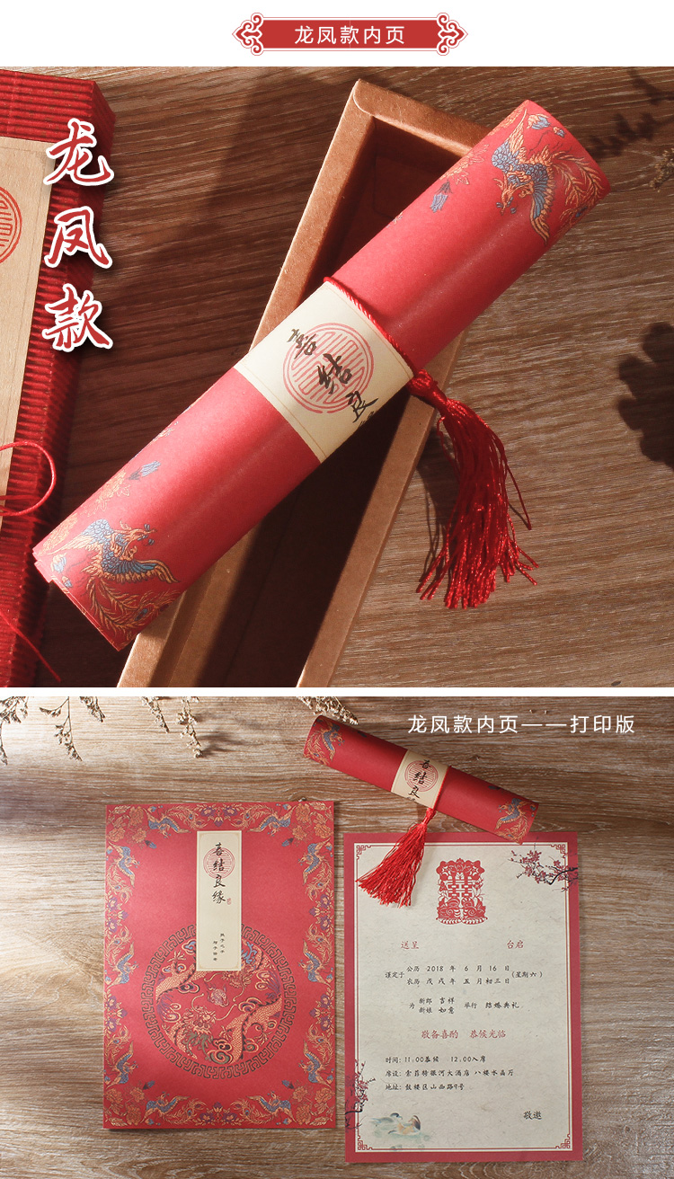 개인화 된 스크롤 복고풍 초대장 결혼식 창조적 인 초대장 중국 전통 중국 스타일 국가 조수 결혼식 초대장