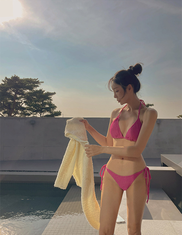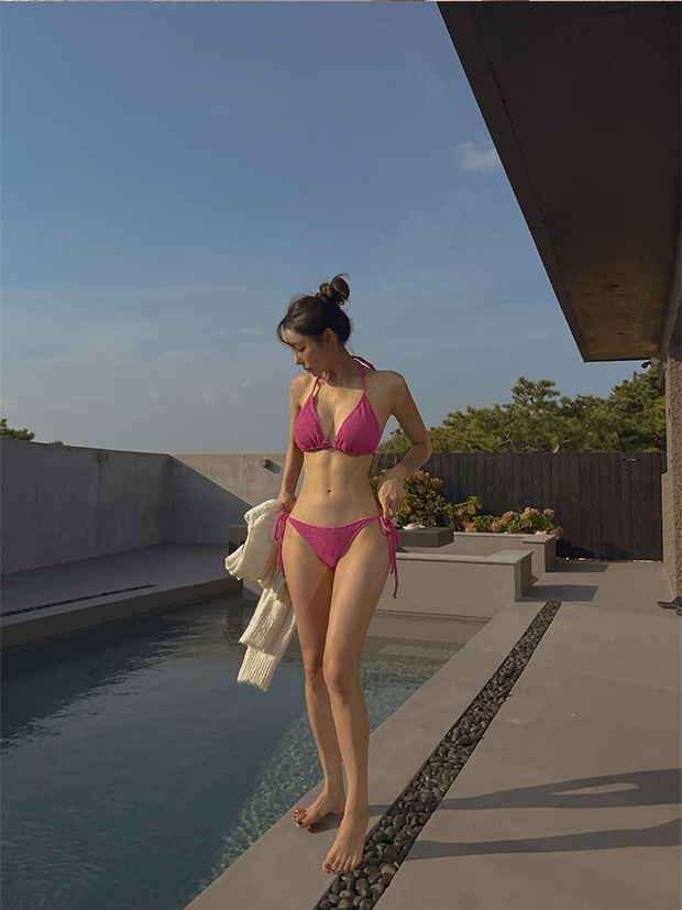 2 색] 인 바람 순수한 뜨거운 소녀 분할 수영복 여성의 섹시한 크기의 가슴 해변 휴가 3 점 비키니