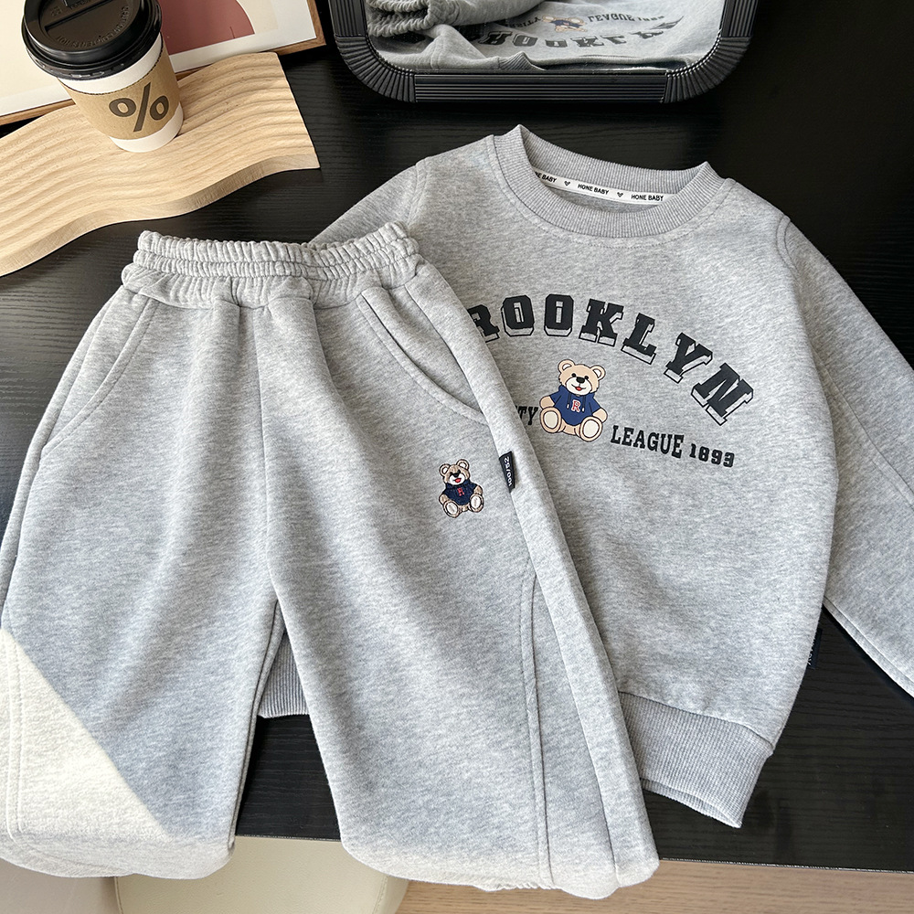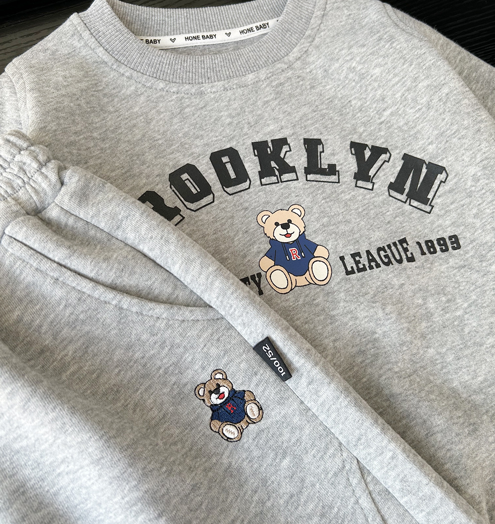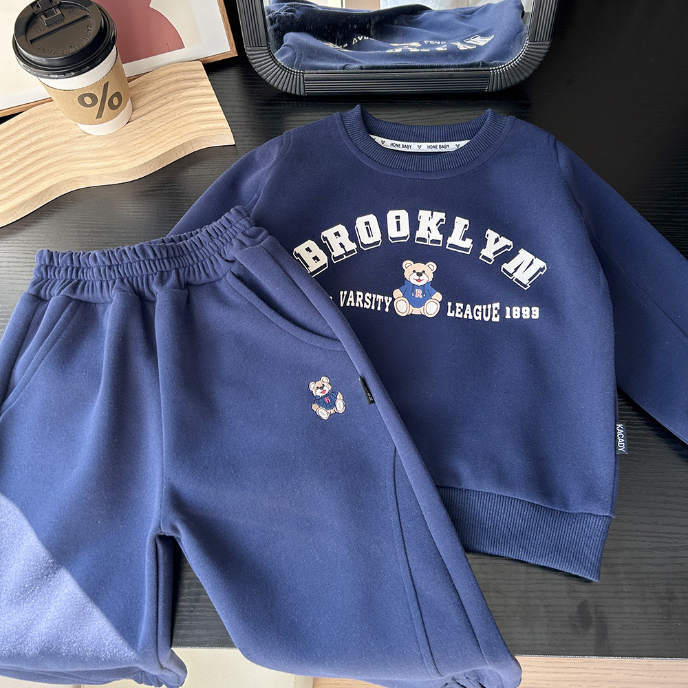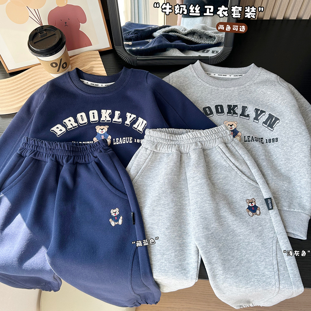 2025 새로운 아동복 봄 아동복 소년 어린이 스웨터 바지 세트 스포츠 스타일 만화 투피스 도매스토어 가기