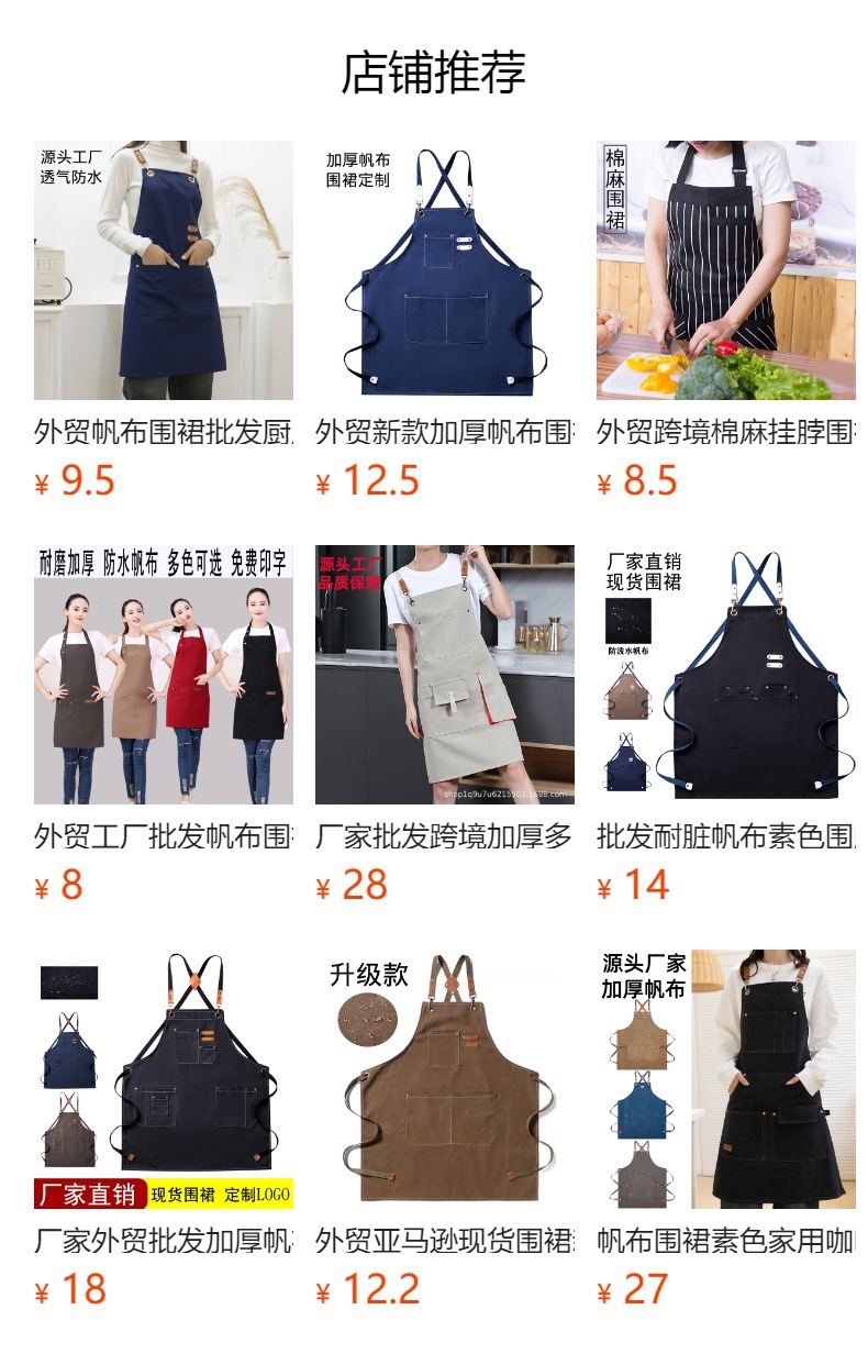 대외 무역 반 튀는 기름 방지 캔버스 일반 허리 앞치마 도매 바베큐 커피 우유 차 가게 주방 집 앞치마스토어 가기