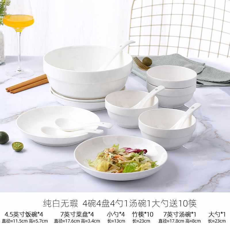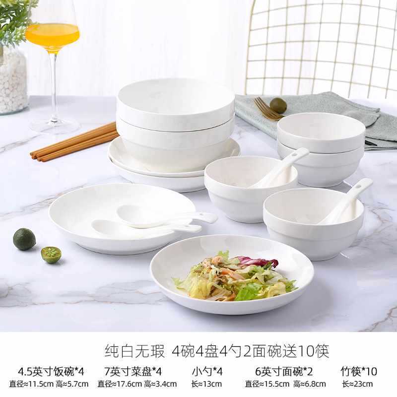 • 순백 4인 식기 세트 (밥그릇 4개, 접시 4개, 국그릇 4개, 국수그릇 2개, 젓가락 10개 포함)⚑