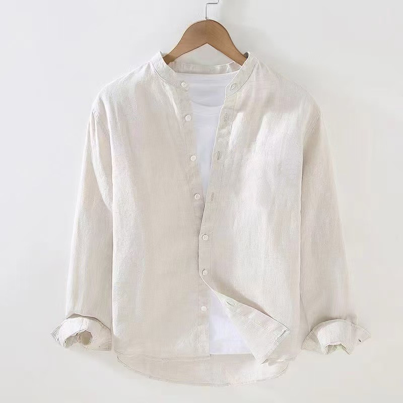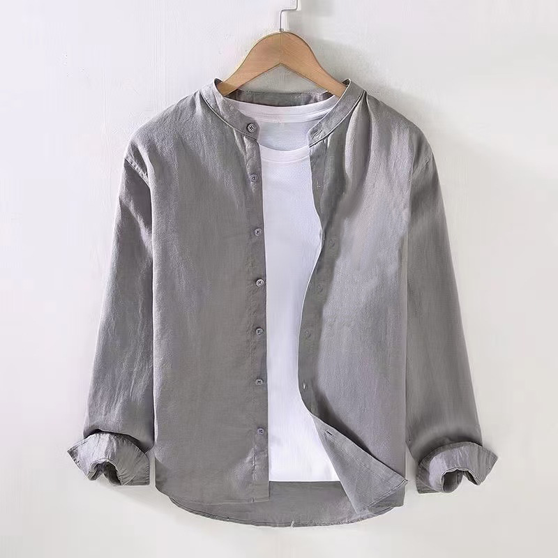남성용 면마 셔츠, 긴팔, 봄가을, 다용도, 중국풍, 통기성, 스탠드 칼라 셔츠 자켓스토어 가기