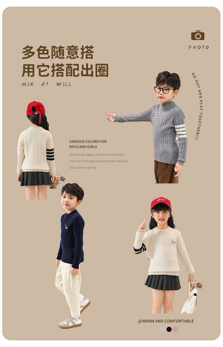 소년 소녀를위한 새로운 어린이 스웨터 순수 울 스웨터 트위스트 어린이를위한 두꺼운 베이스 스웨터 따뜻한 풀오버