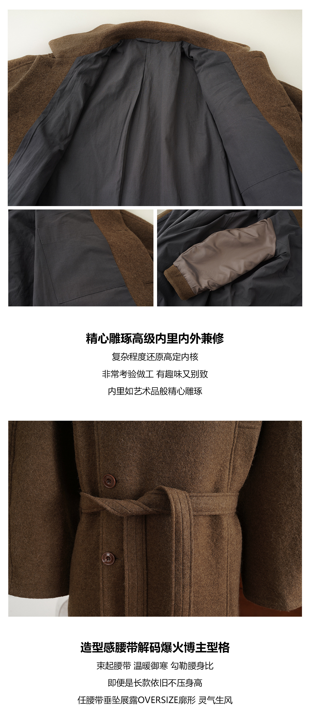 25 겨울 * 파워 모피 코트 여성용 수직 칼라 긴 레이스 업 목욕 가운 모직 코트 프로필 루즈 코트