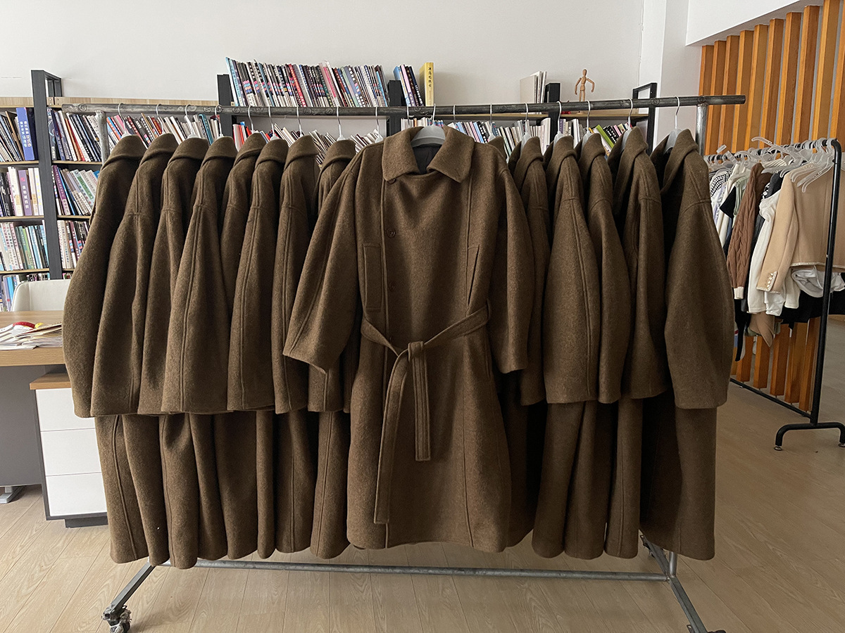 25 겨울 * 파워 모피 코트 여성용 수직 칼라 긴 레이스 업 목욕 가운 모직 코트 프로필 루즈 코트스토어 가기
