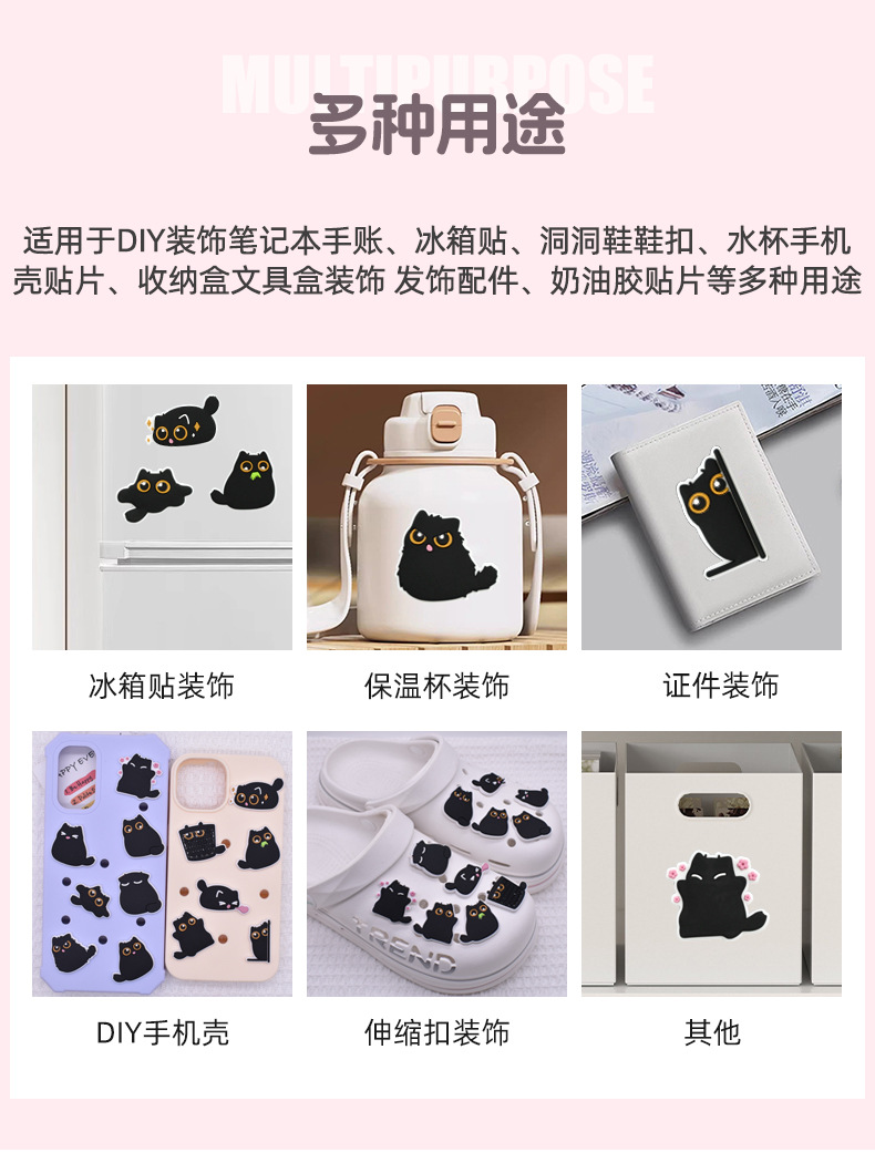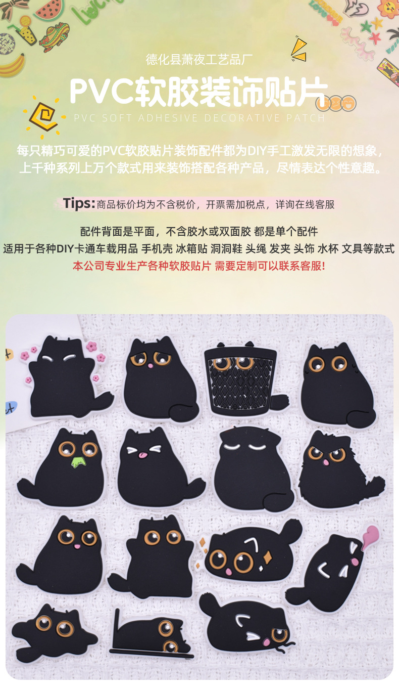 국경 새로운 검은 고양이 PVC 부드러운 접착 스몰 사이즈 패치 귀여운 전화 케이스 신발 꽃 냉장고 스티커 Diy 작은 장식