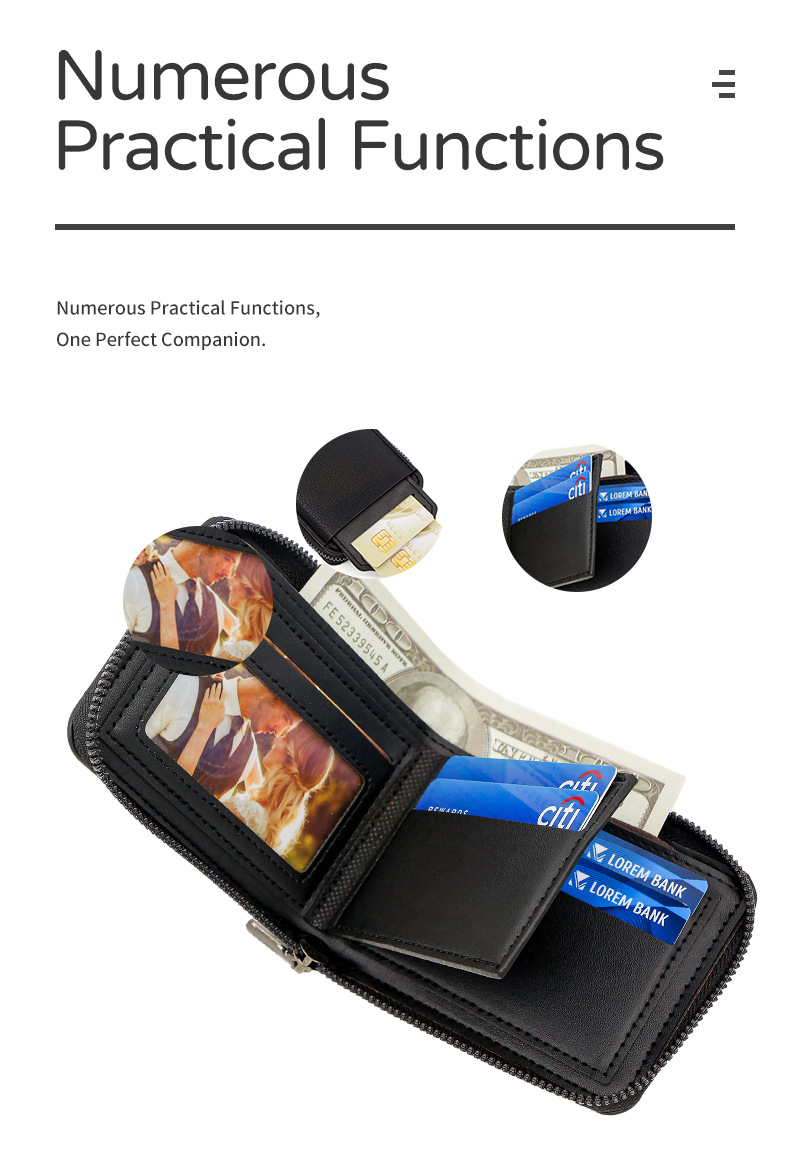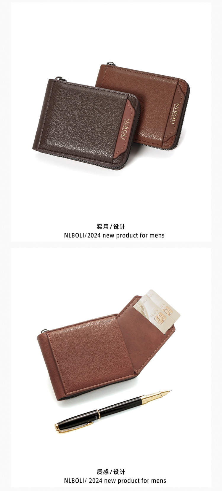 실용적인 남성 지갑 수평 지퍼 가방 카드 인증서 동전 지갑 도매 지갑 휴대용 남성 지갑