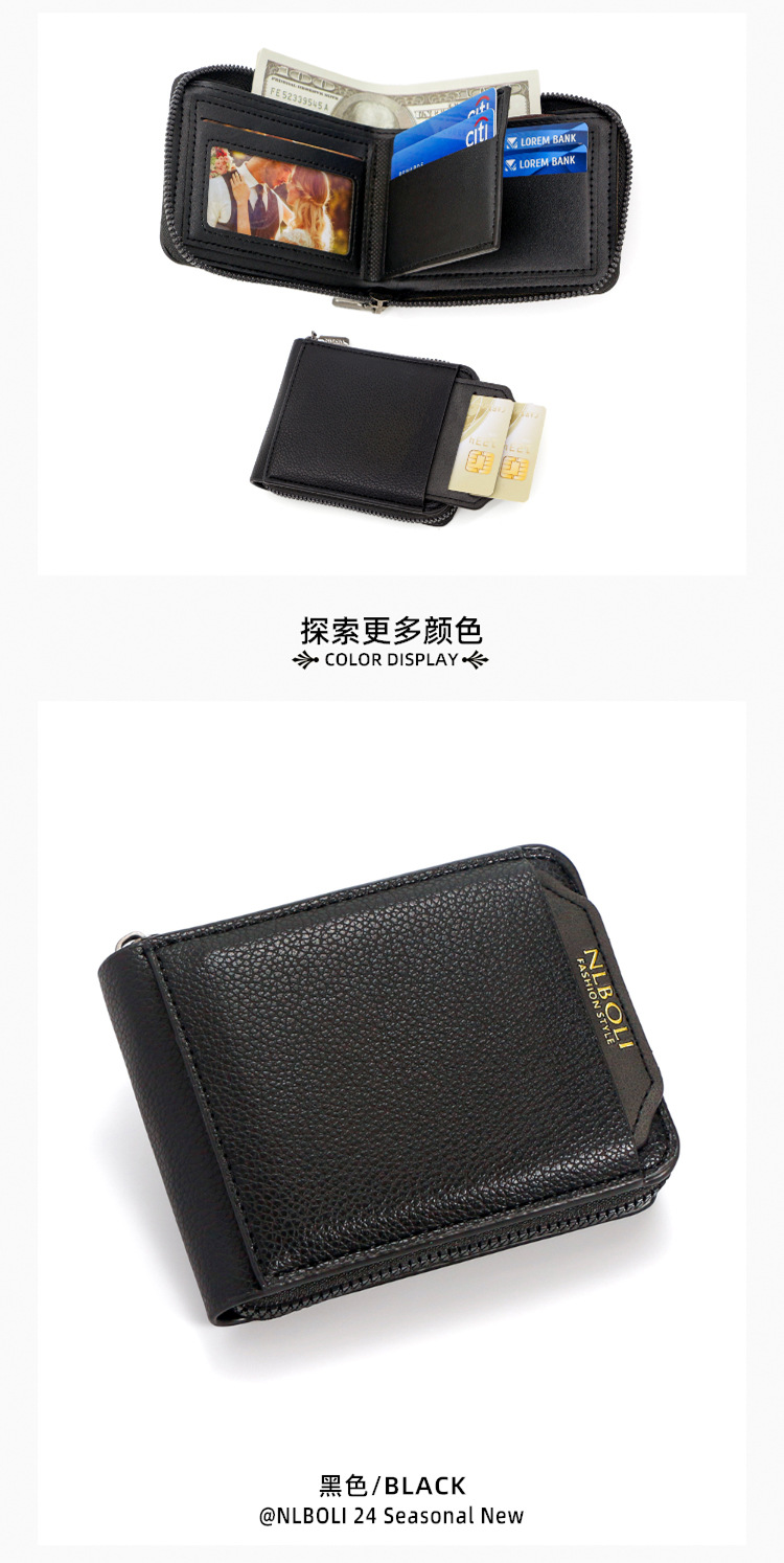 실용적인 남성 지갑 수평 지퍼 가방 카드 인증서 동전 지갑 도매 지갑 휴대용 남성 지갑스토어 가기