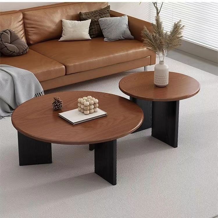 간단한 현대 커피 테이블 블랙 MDF 라운드 작은 아파트 거실 홈 라이트 럭셔리 호두 컬러 디자이너 조합